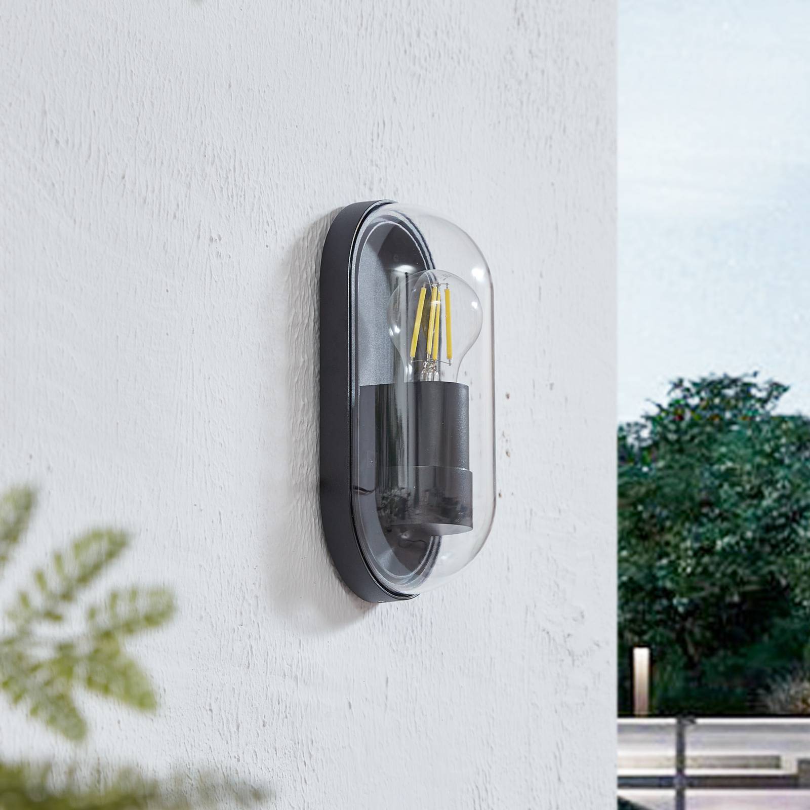 Lucande Venkovní nástěnné svítidlo Serine, 25, 5 cm, černá, hliník, Hliníkový tlakový odlitek, sklo, E27, 15W, L: 12.5 cm, K: 25.5cm