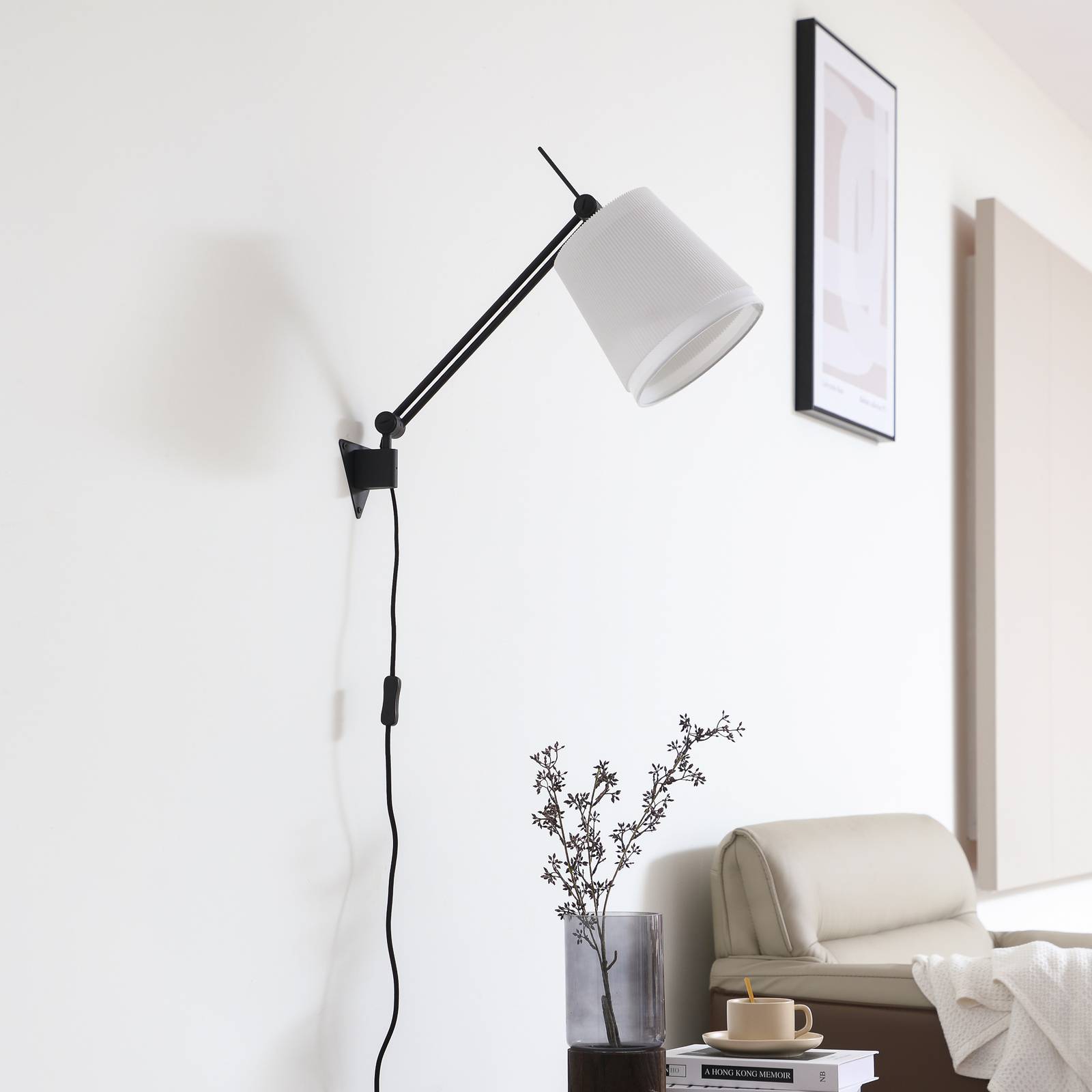 Lucande Nástěnné svítidlo Caelia, zástrčka, černá, textil, E27, Pracovna / kancelář, Kov, textil, E27, 15W, L: 19 cm, K: 66cm