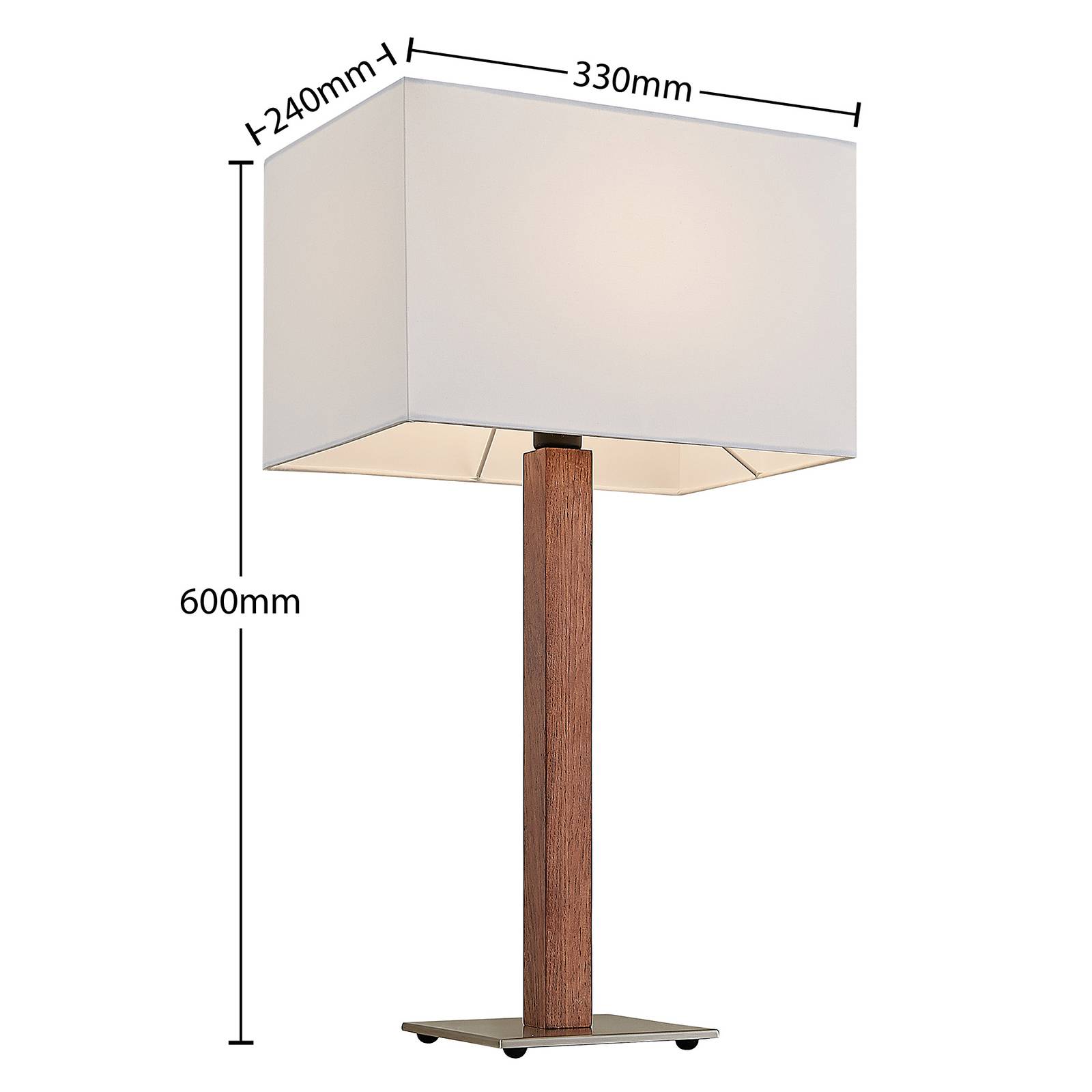 Lucande Larkira látková stolní lampa, hranatá bílá, Obývací pokoj / jídelna, tkanina, ocel, dubové dřevo, E27, 60W, L: 33 cm, K: 60cm