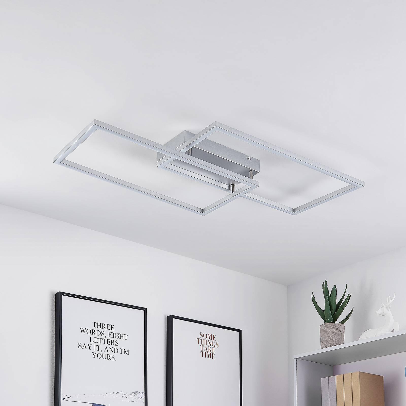 Lucande Muir LED stropní svítidlo, obdélník, CCT, Obývací pokoj / jídelna, železo, hliník, plast, 32W, P: 90 cm, L: 45 cm, K: 8.2cm