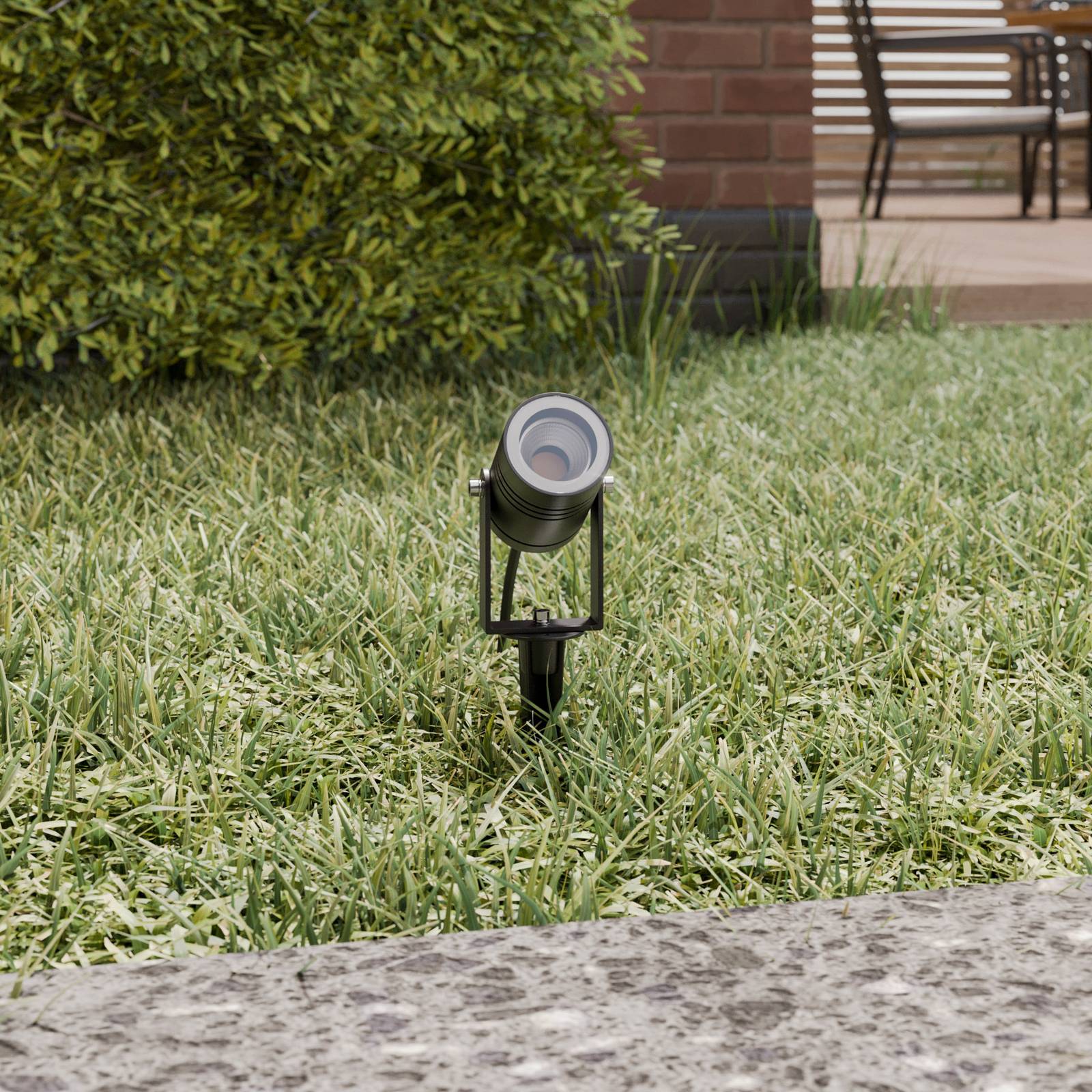 Lucande Venkovní reflektor Galina, zemní hrot, zástrčka, šedá, 11 cm, Hliníkový tlakový odlitek, GU10, 6W, L: 5.95 cm, K: 10.9cm