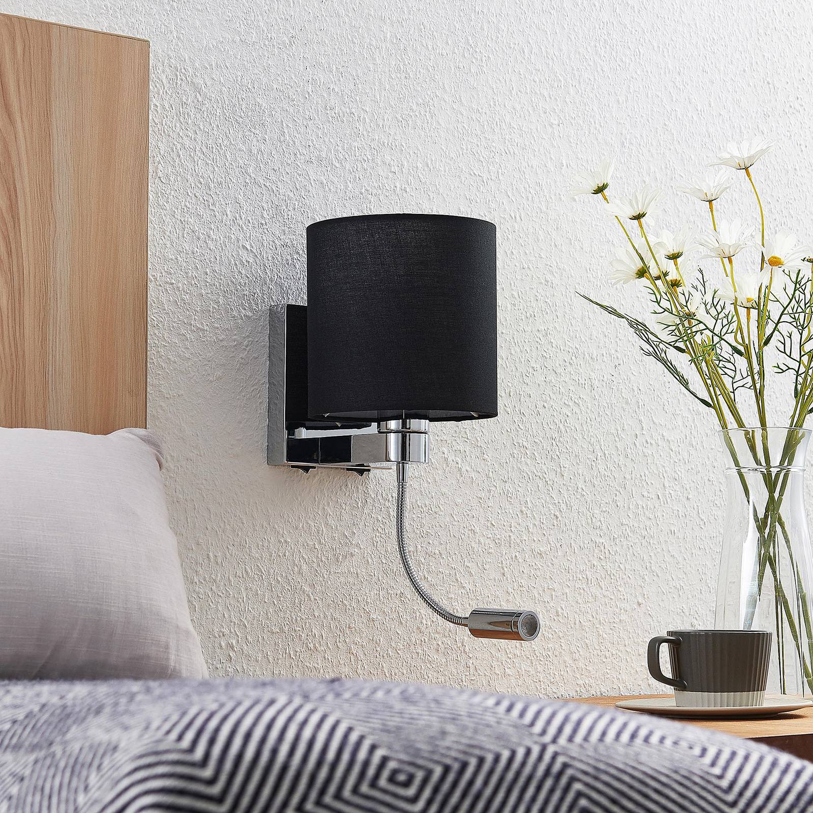 Lucande nástěnné světlo Brinja LED rameno, černá, Obývací pokoj / jídelna, ocel, hliník, textil, E27, 60W, L: 16 cm, K: 45.4cm