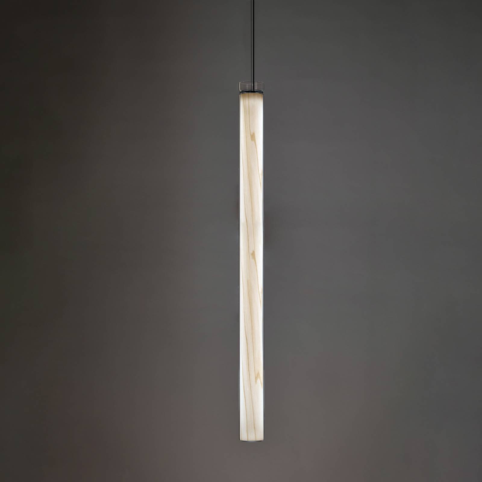 LZF LamPS Estela SH LED závěsné světlo, 120 cm, buk, Obývací pokoj / jídelna, dřevěná dýha, foukané borosilikátové sklo, kov, 32W, P: 120 cm