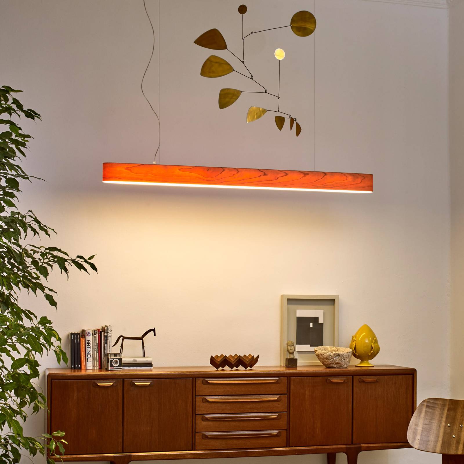 LZF LamPS I-Club Slim LED závěsné světlo 120 cm třešeň, Obývací pokoj / jídelna, dřevěná dýha, akryl, kov, 25W, P: 120 cm, L: 10 cm