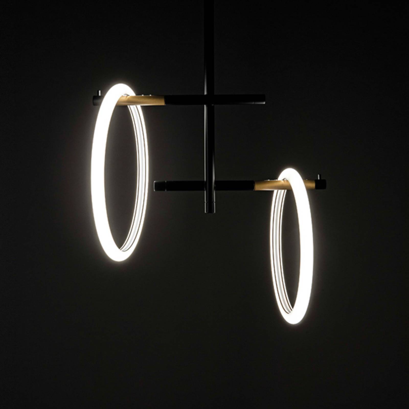 Marchetti Stropní svítidlo LED Ulaop, dva kroužky, černé, Obývací pokoj / jídelna, Kov, plexisklo, L: 40 cm, K: 55cm