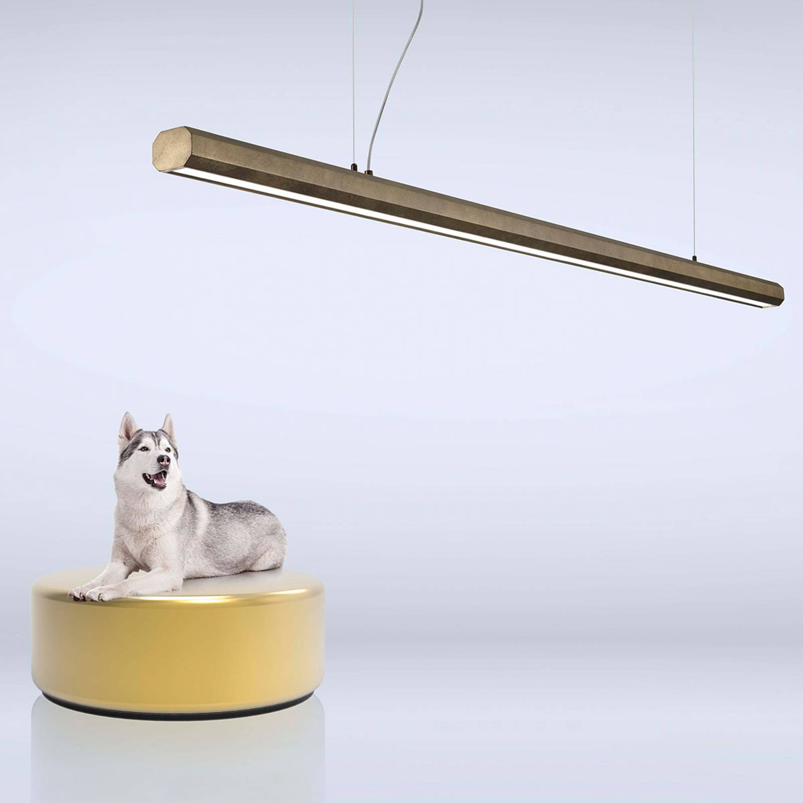 Marchetti Závěsné LED svítidlo Materica beam 200 cm mosazné, Obývací pokoj / jídelna, Beton, 30W, P: 200 cm, K: 6.5cm