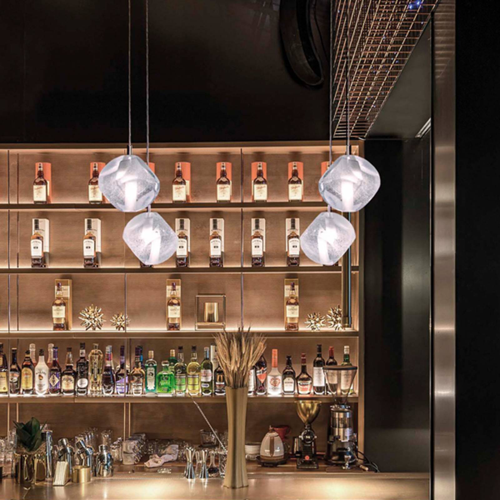 Marchetti Závěsné svítidlo Glace ze skla, tři světla, Obývací pokoj / jídelna, Kov, sklo, G9, 40W
