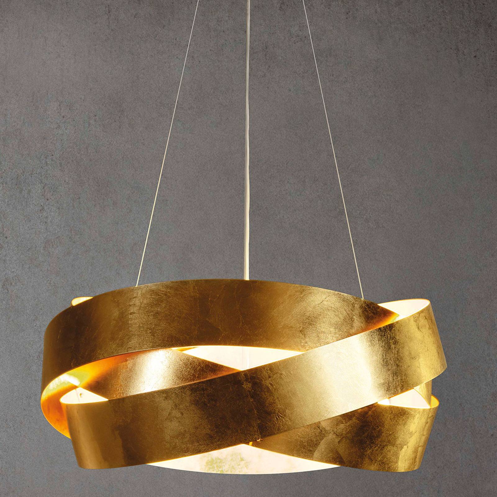 Marchetti Závěsné svítidlo Pura LED s plátkovým zlatem 60 cm, Obývací pokoj / jídelna, Pozlacený kovový list, 33W, K: 28cm