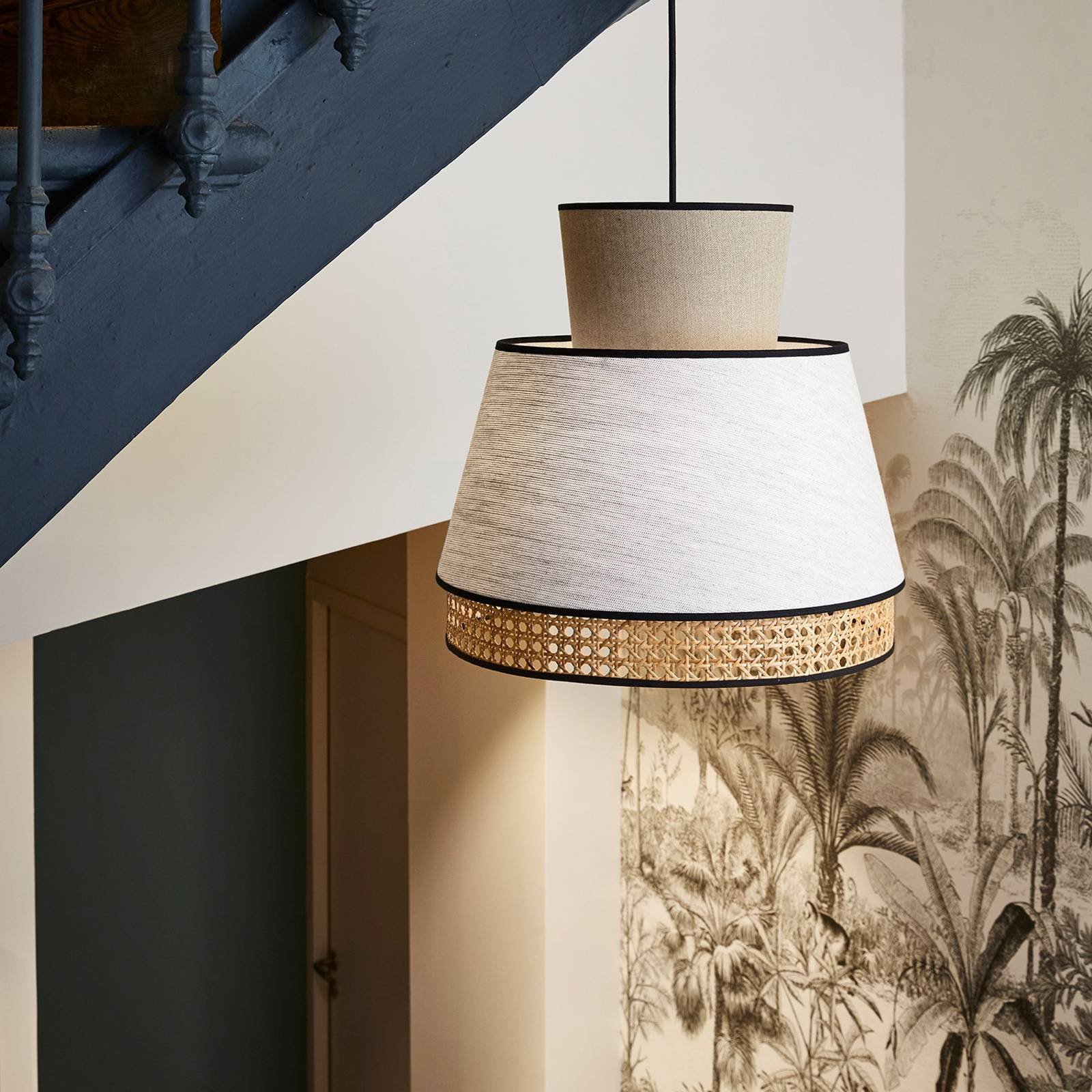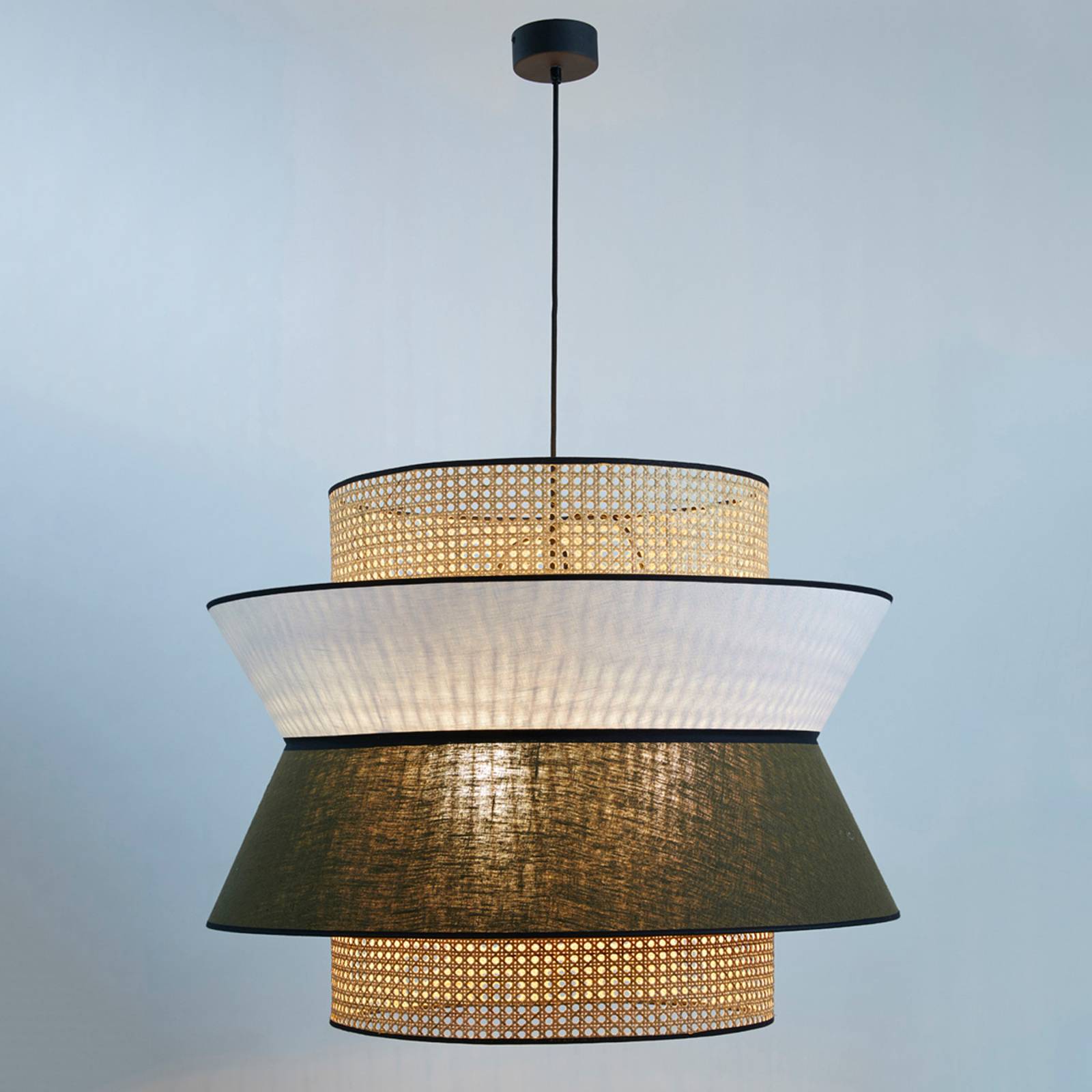 MARKET SET Singapour XXL závěsné světlo khaki/bílá, Obývací pokoj / jídelna, textilie, ratan, kov, E27, 40W, K: 60cm