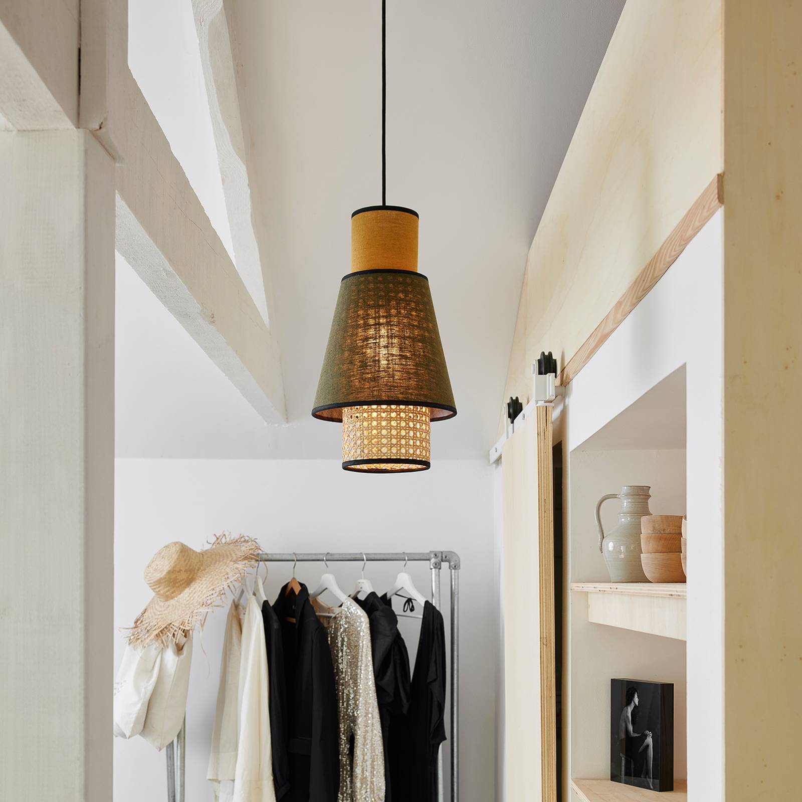 MARKET SET Singapour XS závěsné světlo khaki/kari, Obývací pokoj / jídelna, textilie, ratan, kov, E27, 60W, K: 36cm