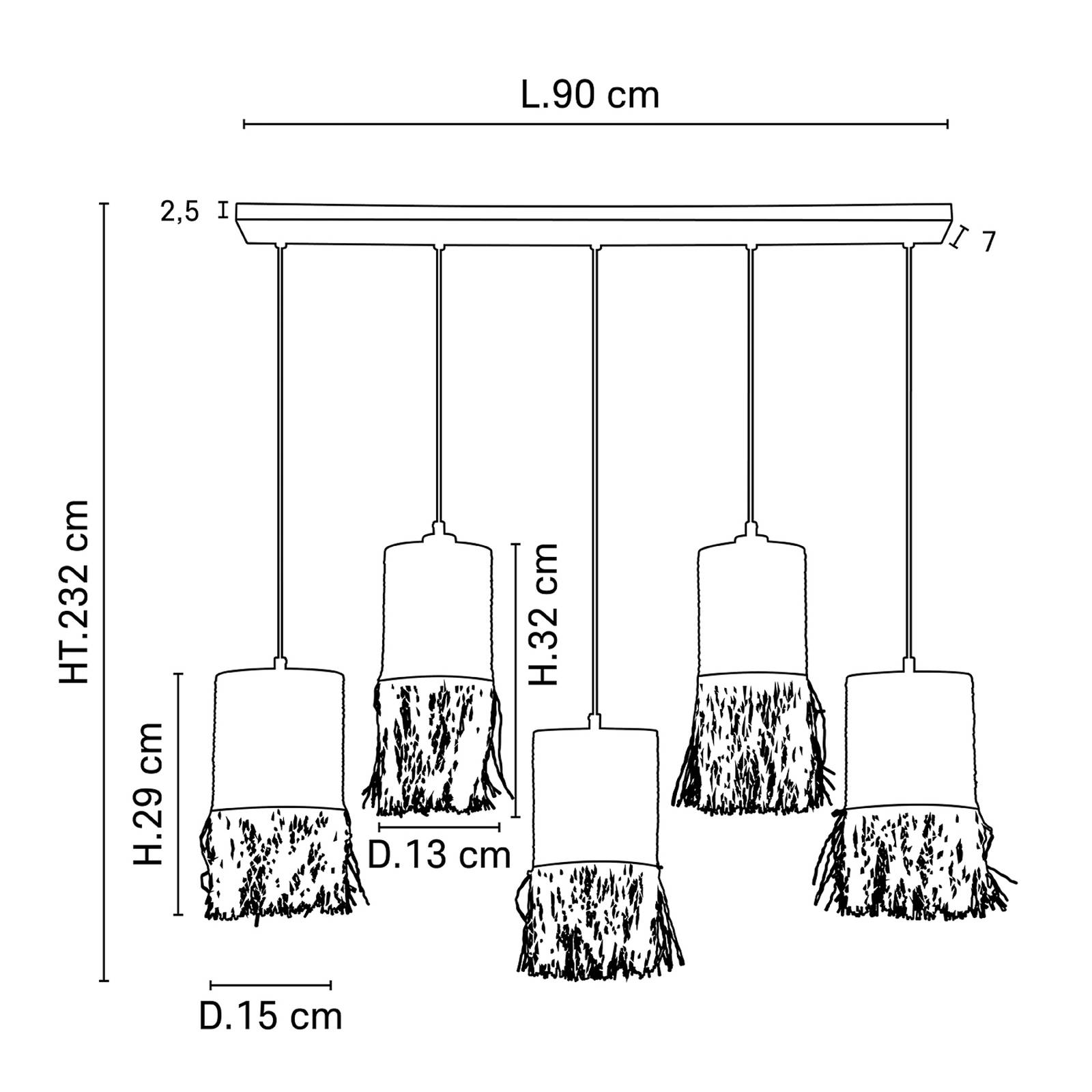MARKET SET Formentera závěsné 5 zdrojů lineární, Obývací pokoj / jídelna, vlákno z banánovníku, palmové vlákno (raffia), kov, E27, 40W, P: 90 cm, L: 15 cm, K: 29cm