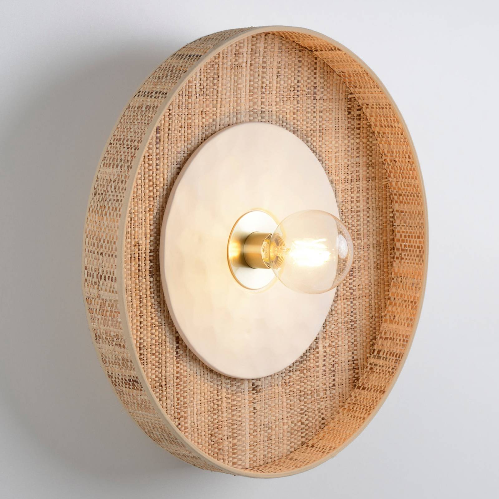 MARKET SET Nástěnné svítidlo Portinatx bílé, Ø50cm, Obývací pokoj / jídelna, Kov, rafie, keramika, E27, 60W