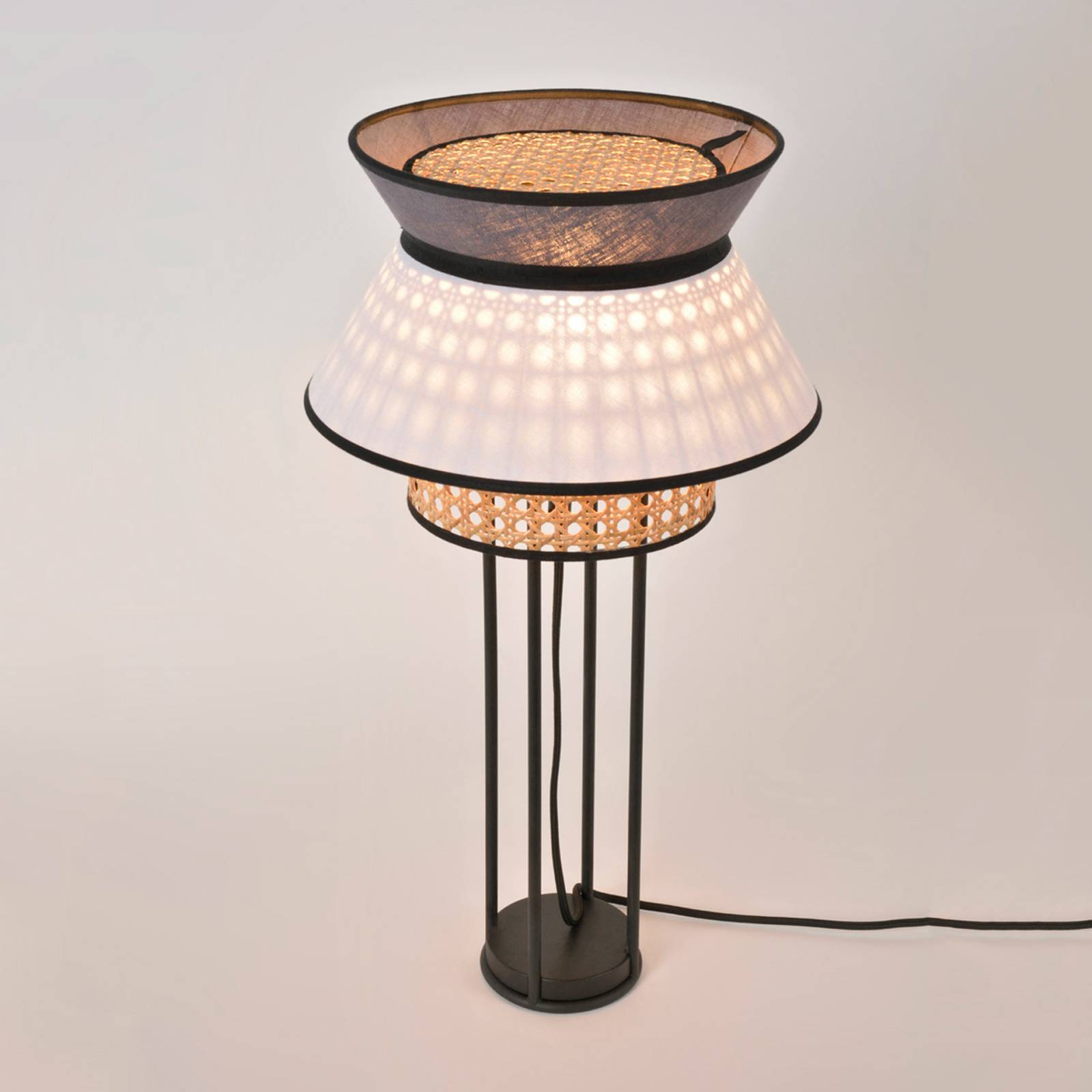 MARKET SET Singapour DBL stolní lampa, bílá/šedá, Obývací pokoj / jídelna, textilie, ratan, kov, E27, 40W, K: 56cm
