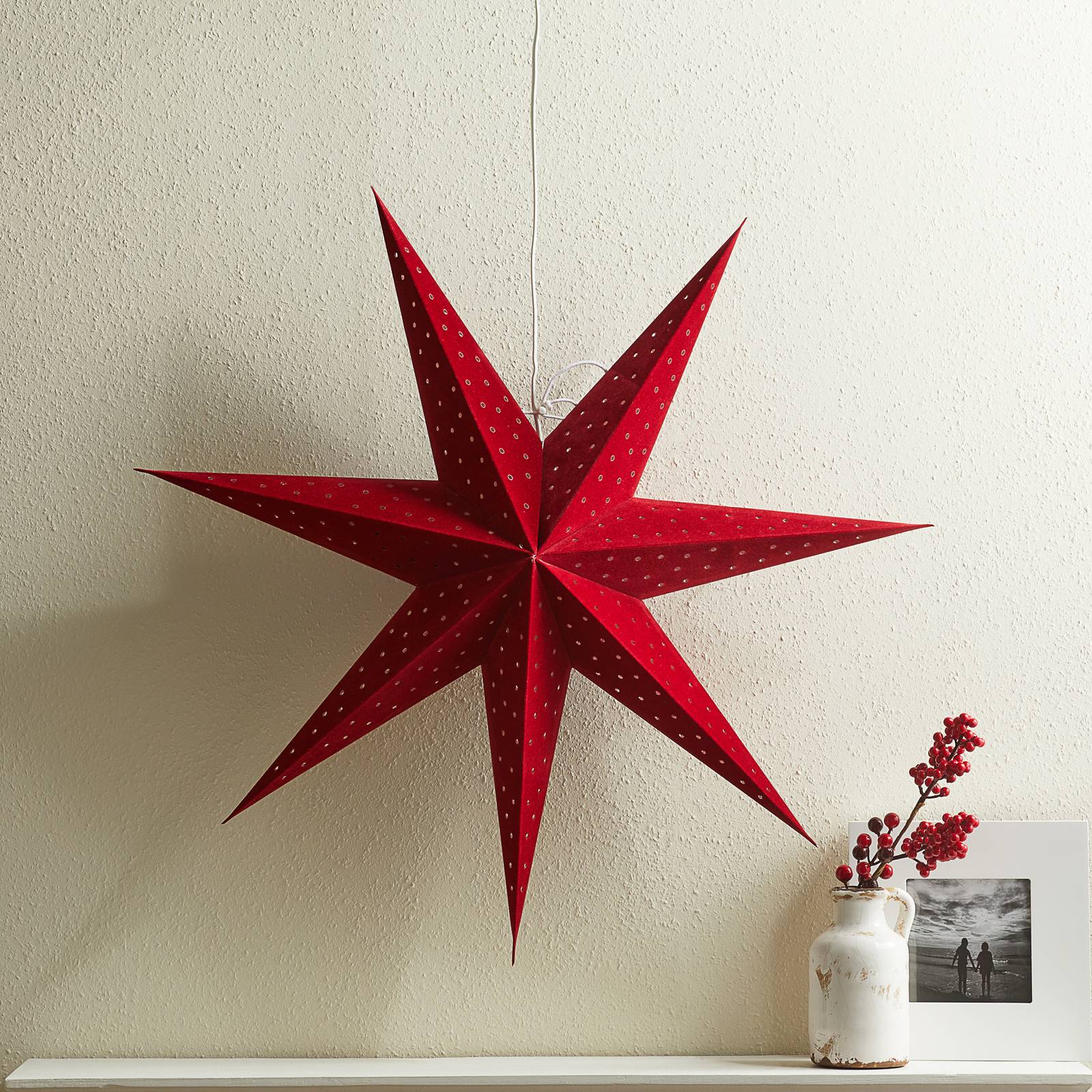 Markslöjd Hvězda Clara na zavěšení, sametový vzhled Ø 75 cm, červená barva, Papír, E14, 25W