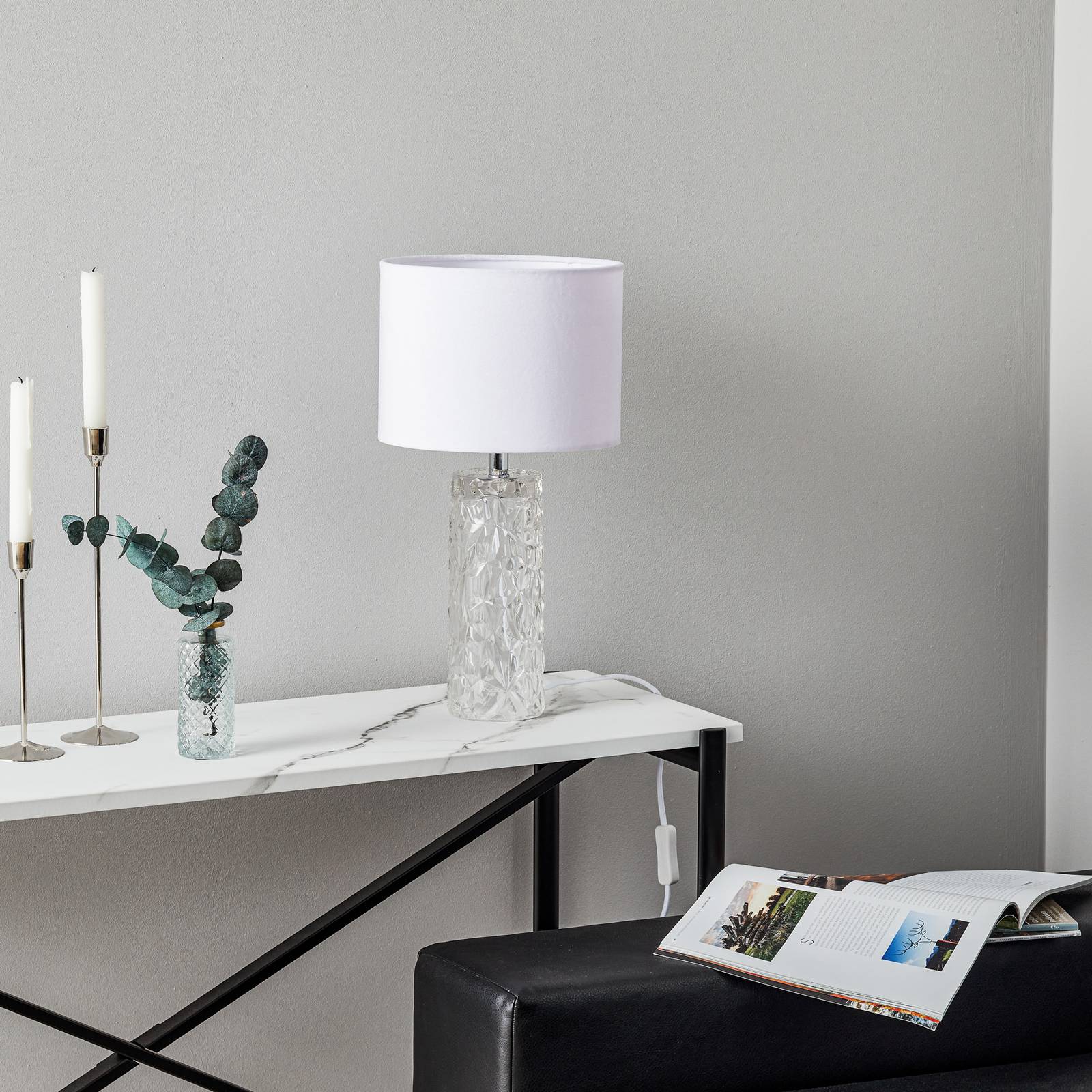 Markslöjd Bílá stolní lampa Madame s textilním stínidlem, Obývací pokoj / jídelna, sklo, samet, E27, 60W, K: 46.5cm