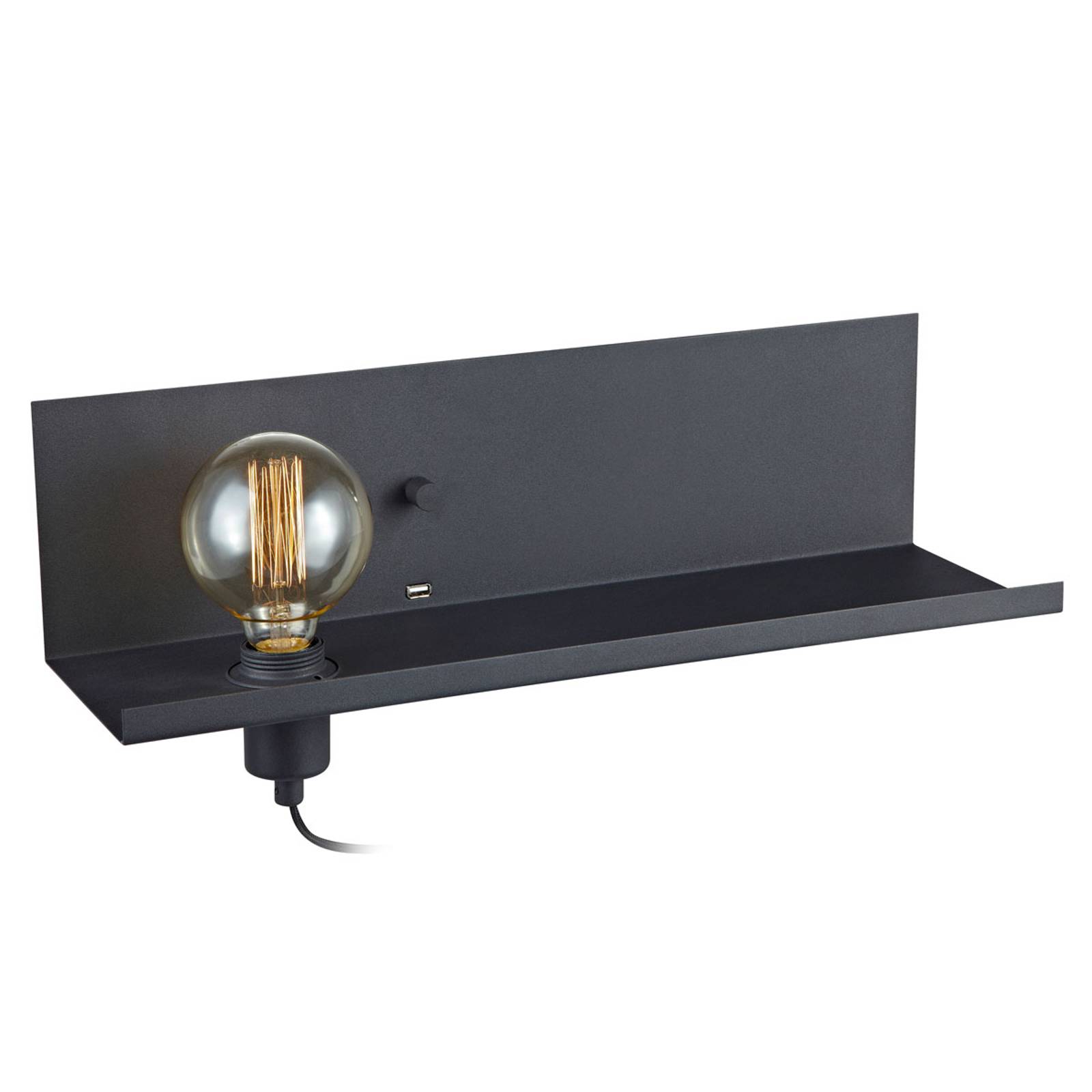 Markslöjd Multifunkční nástěnné svítidlo, černé, žehlička, nabíjecí zásuvka USB, Obývací pokoj / jídelna, Iron, E27, 60W, L: 50 cm, K: 14cm