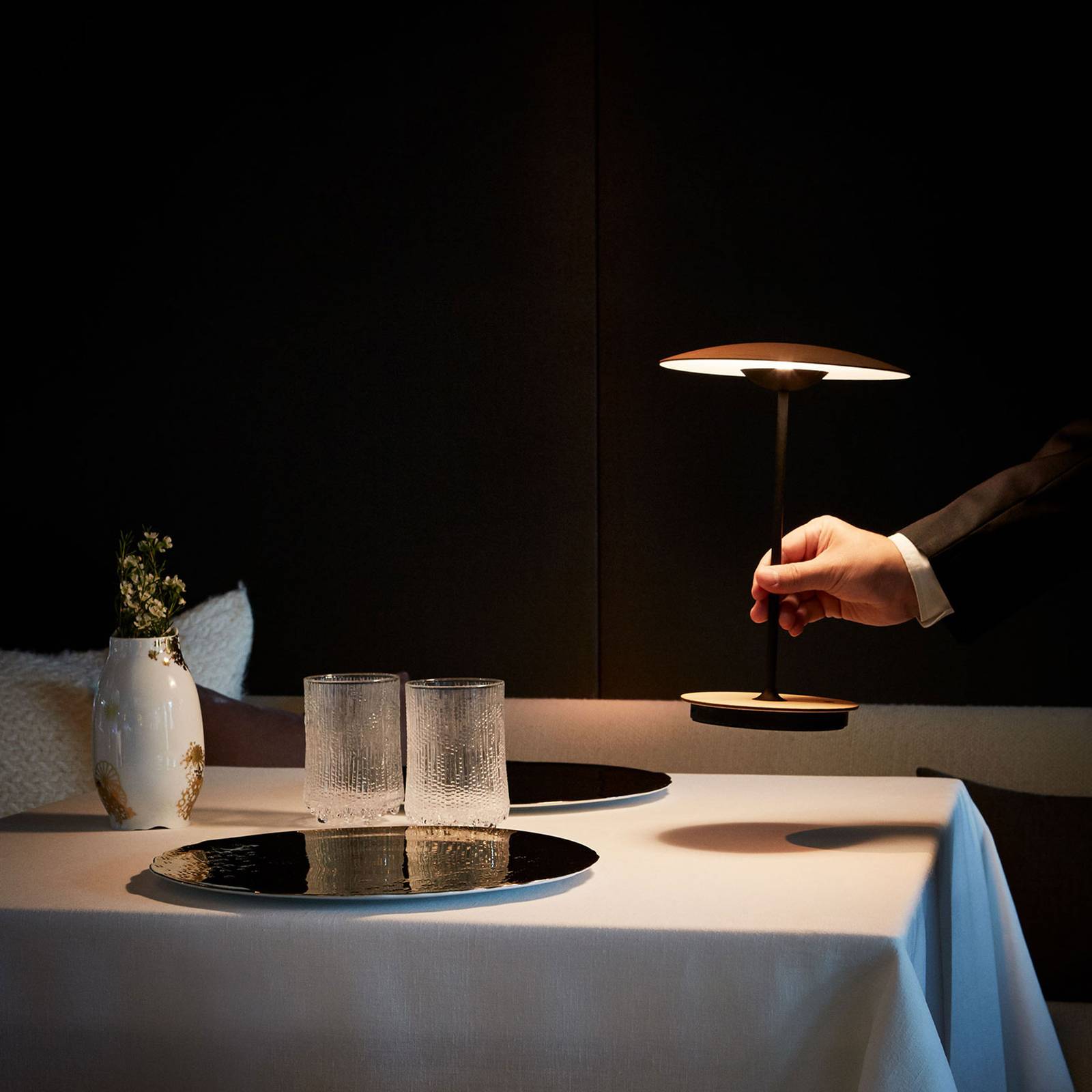 Marset MARSET Ginger LED stolní lampa, baterie, dub/bílá, Obývací pokoj / jídelna, dřevo lisované, hliník, 3.5W, K: 30cm