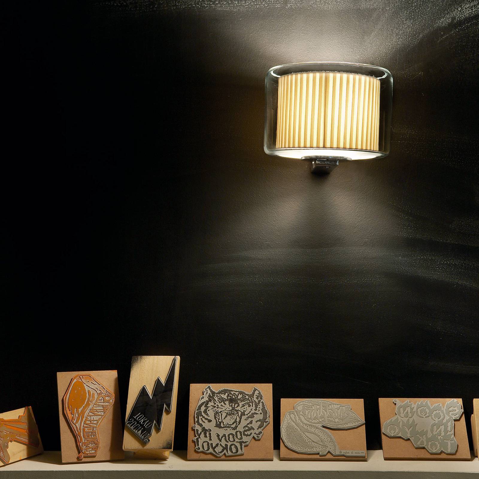 Marset MARSET Mercer A nástěnné světlo ze skla a bavlny, Obývací pokoj / jídelna, sklo, bavlna, železo, E14, 5W, L: 20 cm, K: 15.4cm