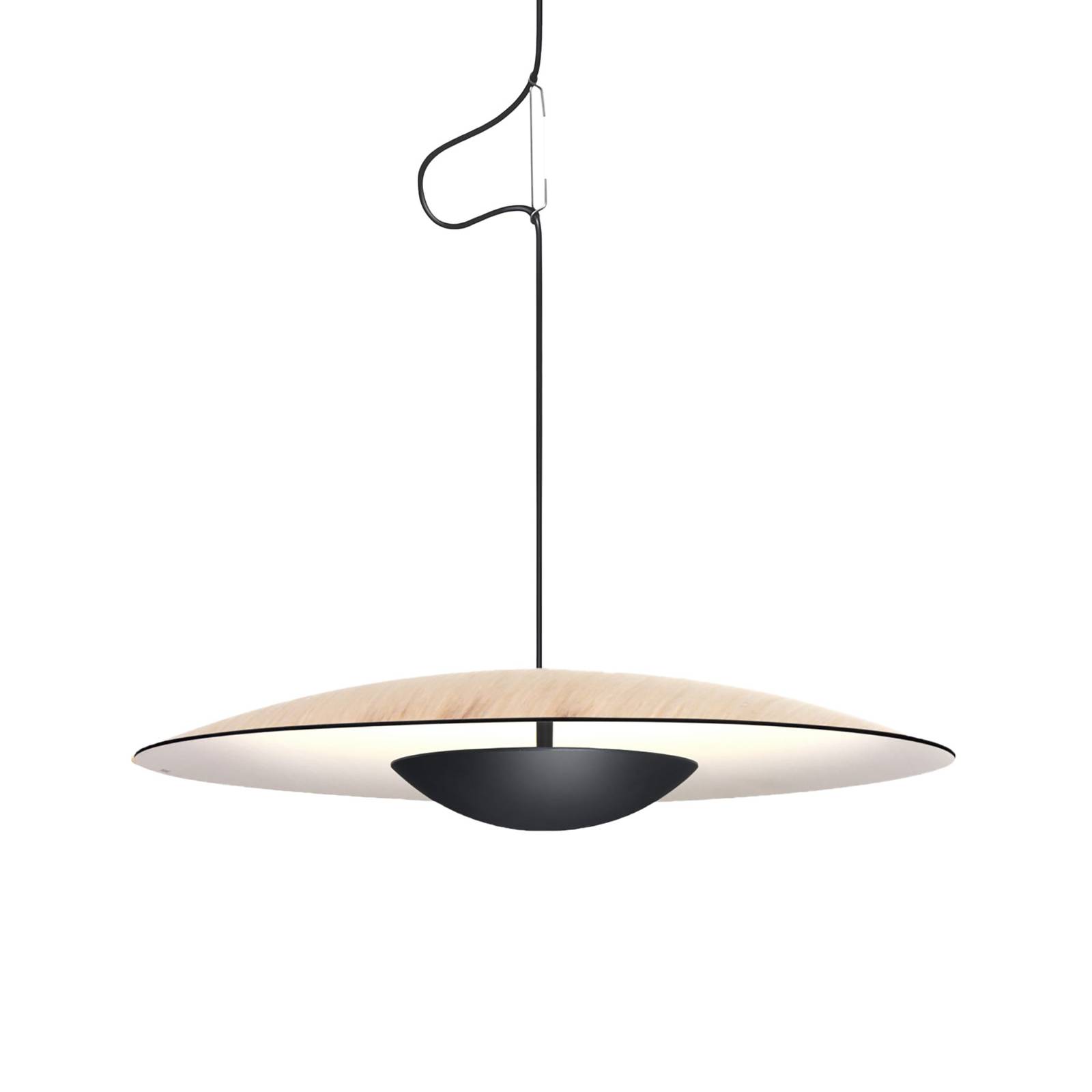 Marset MARSET Ginger LED závěsný triak Ø32cm dub/bílá, Obývací pokoj / jídelna, Lisované dřevo, hliník, 8.2W, K: 6cm