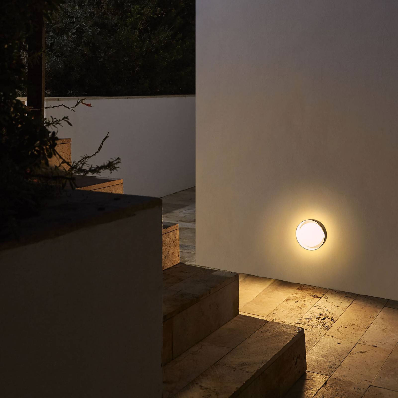 Marset MARSET Plaff-on! LED nástěnné světlo, IP65, Ø16cm, hliník, sklo, 8W