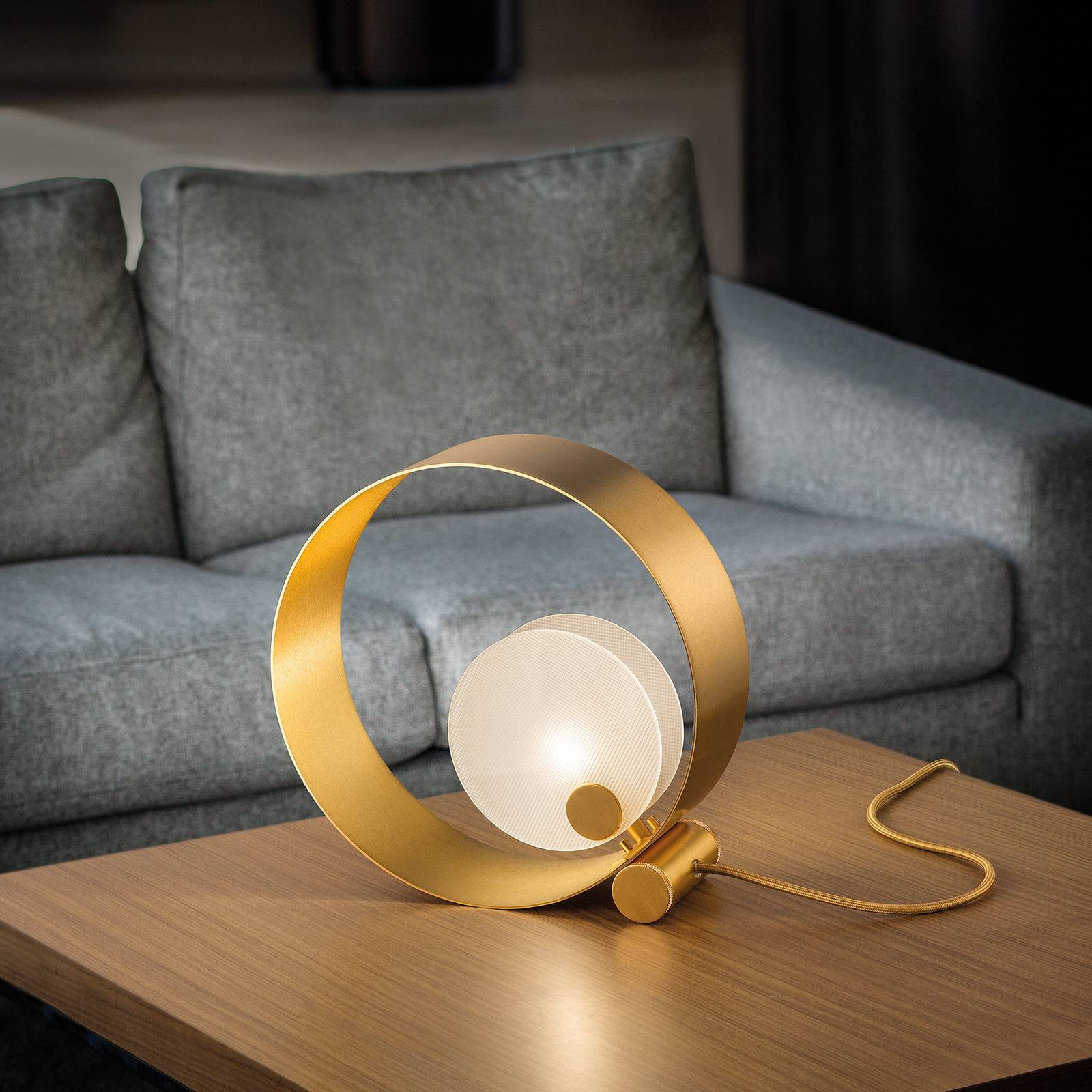 Masiero Stolní lampa Sound TL1, kulatá, zlatý rám, G9, Obývací pokoj / jídelna, kov, sklo, G9, 40W, P: 30 cm, L: 11 cm, K: 30cm