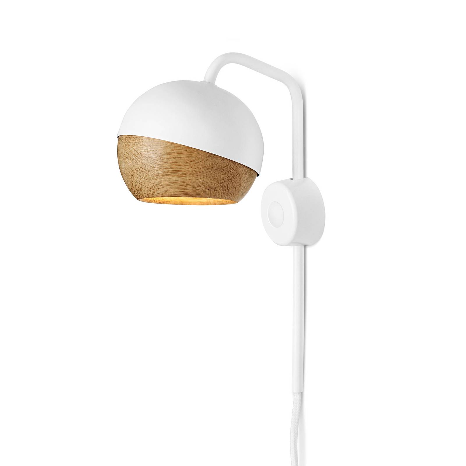 MATER Mater Ray nástěnné světlo, bílá/dub, Obývací pokoj / jídelna, ocel, dubové dřevo, textil, G9, 3.5W, K: 31.8cm