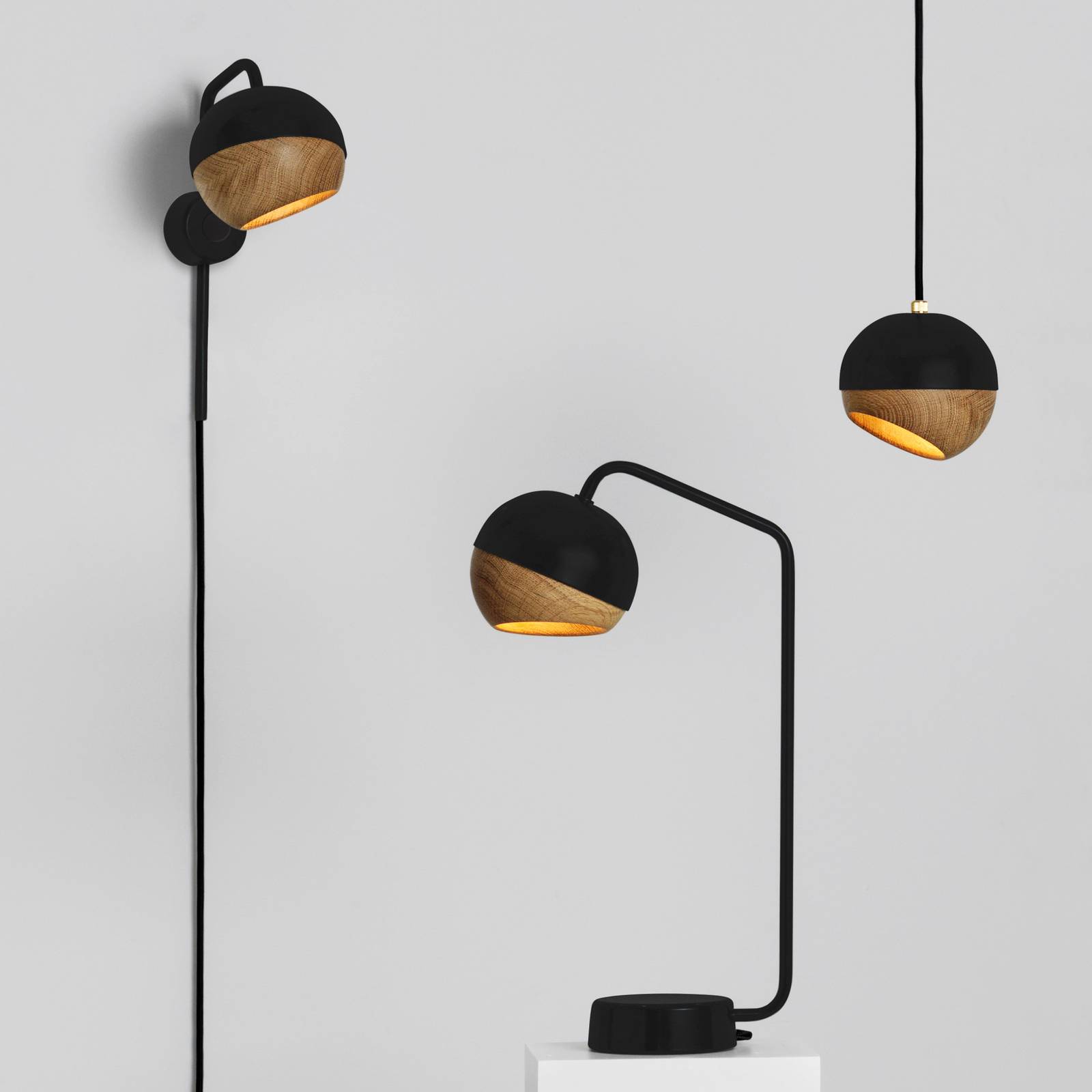 MATER Mater Ray stolní lampa, černá/dub, Obývací pokoj / jídelna, ocel, dubové dřevo, textil, G9, 3.5W, K: 40cm