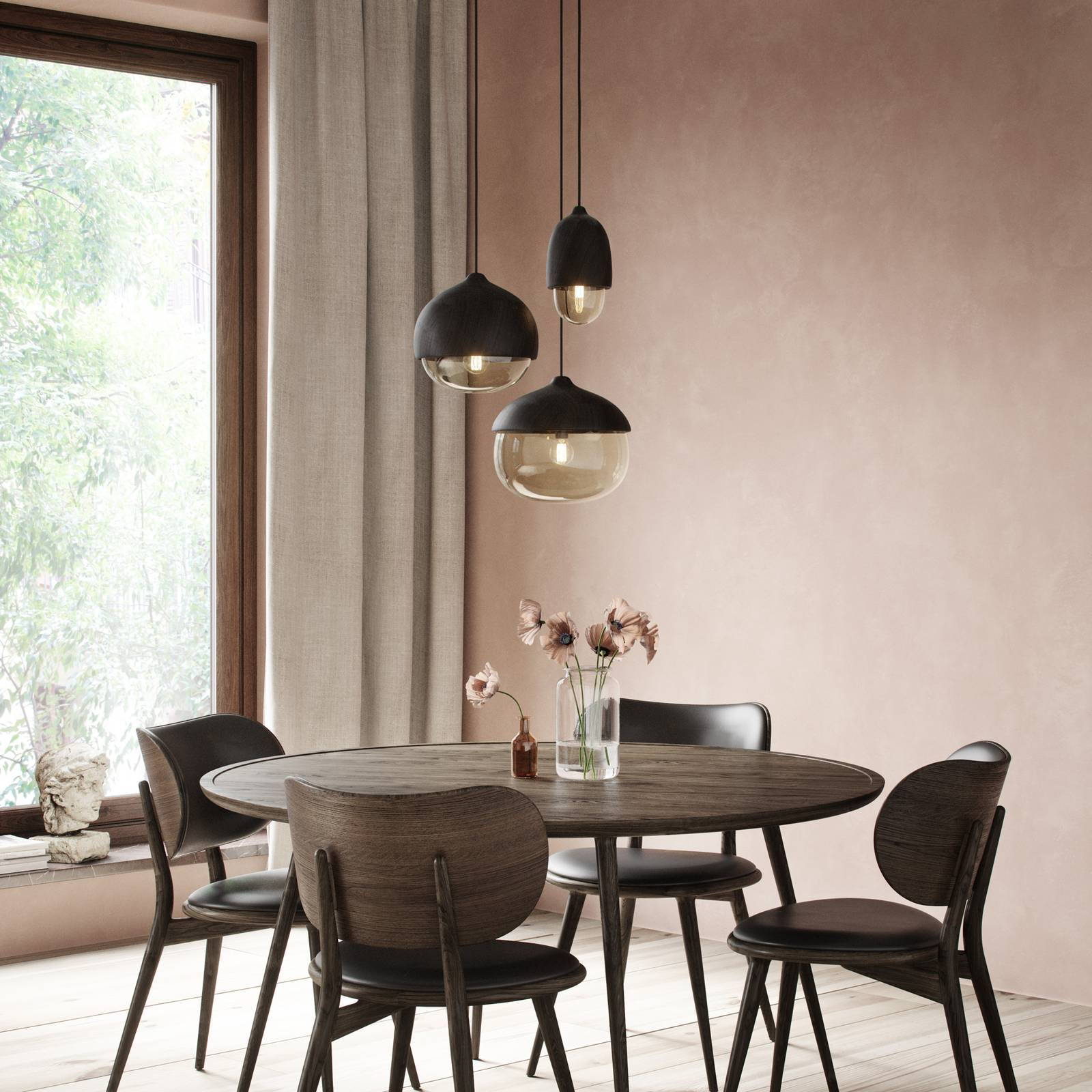 MATER Mater Terho M závěsné světlo černá/kouřová Ø 24cm, Obývací pokoj / jídelna, Lipové dřevo, ručně foukané sklo, E27, 6W, K: 21.5cm