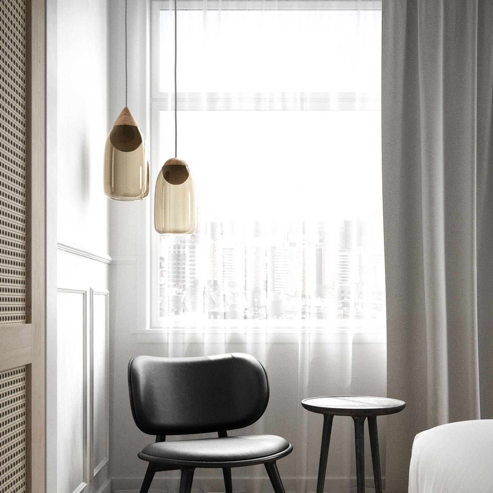 MATER Mater Terho S závěsné světlo černá/kouřová Ø 13, 5cm, Obývací pokoj / jídelna, Lipové dřevo, ručně foukané sklo, E27, 6W, K: 21.5cm