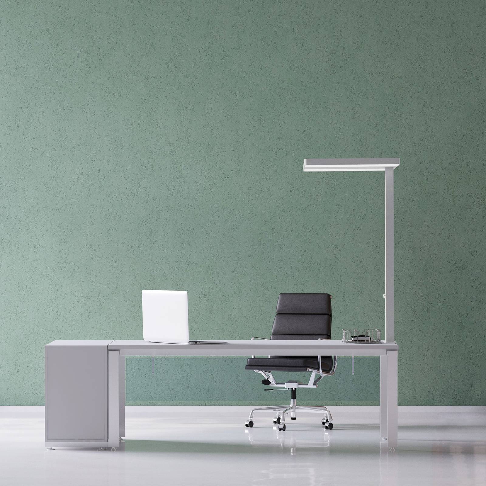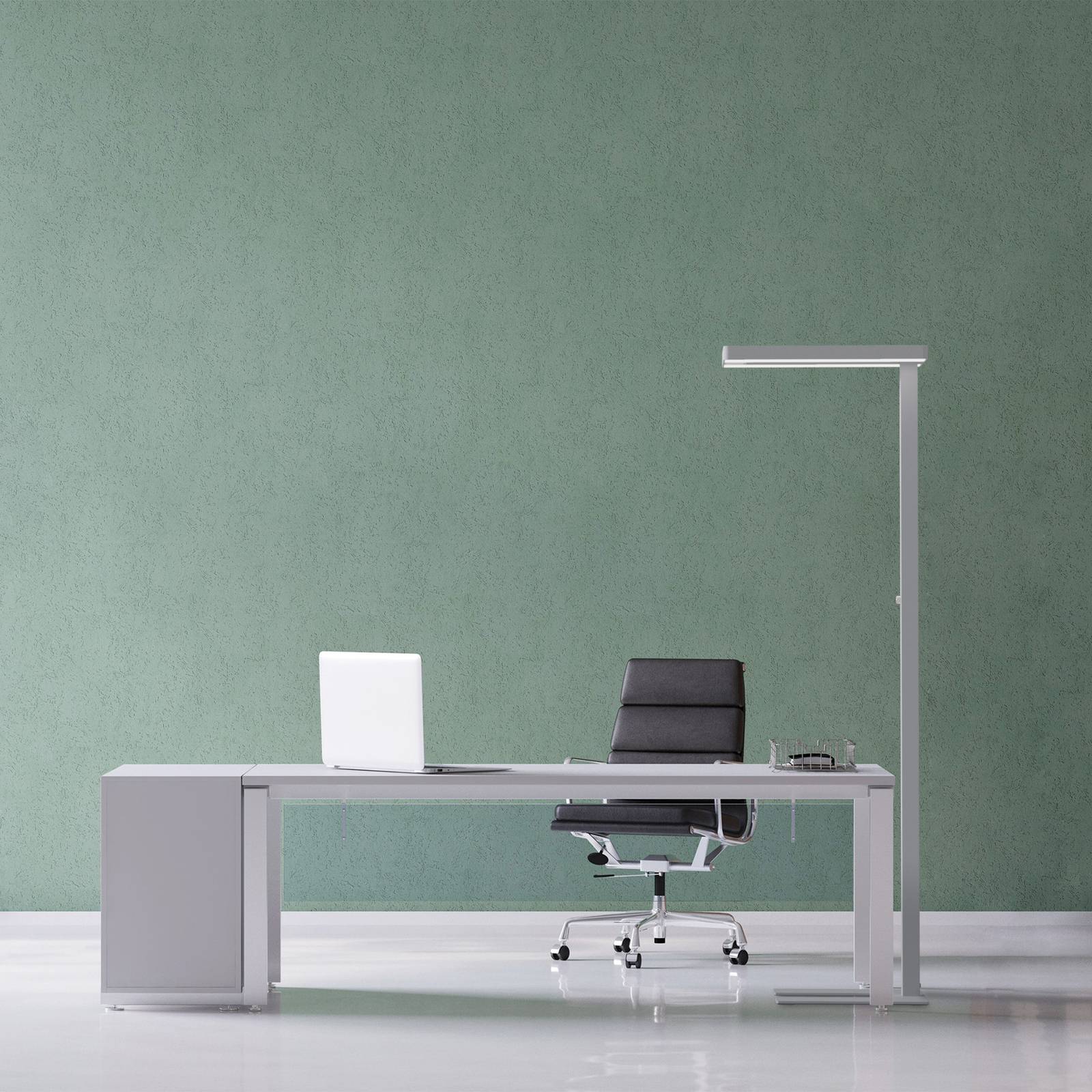 Maul LED stojací lampa MAULjaval, stříbrná, stojan, Pracovna / kancelář, Hliník, 68W, L: 28 cm, K: 196cm