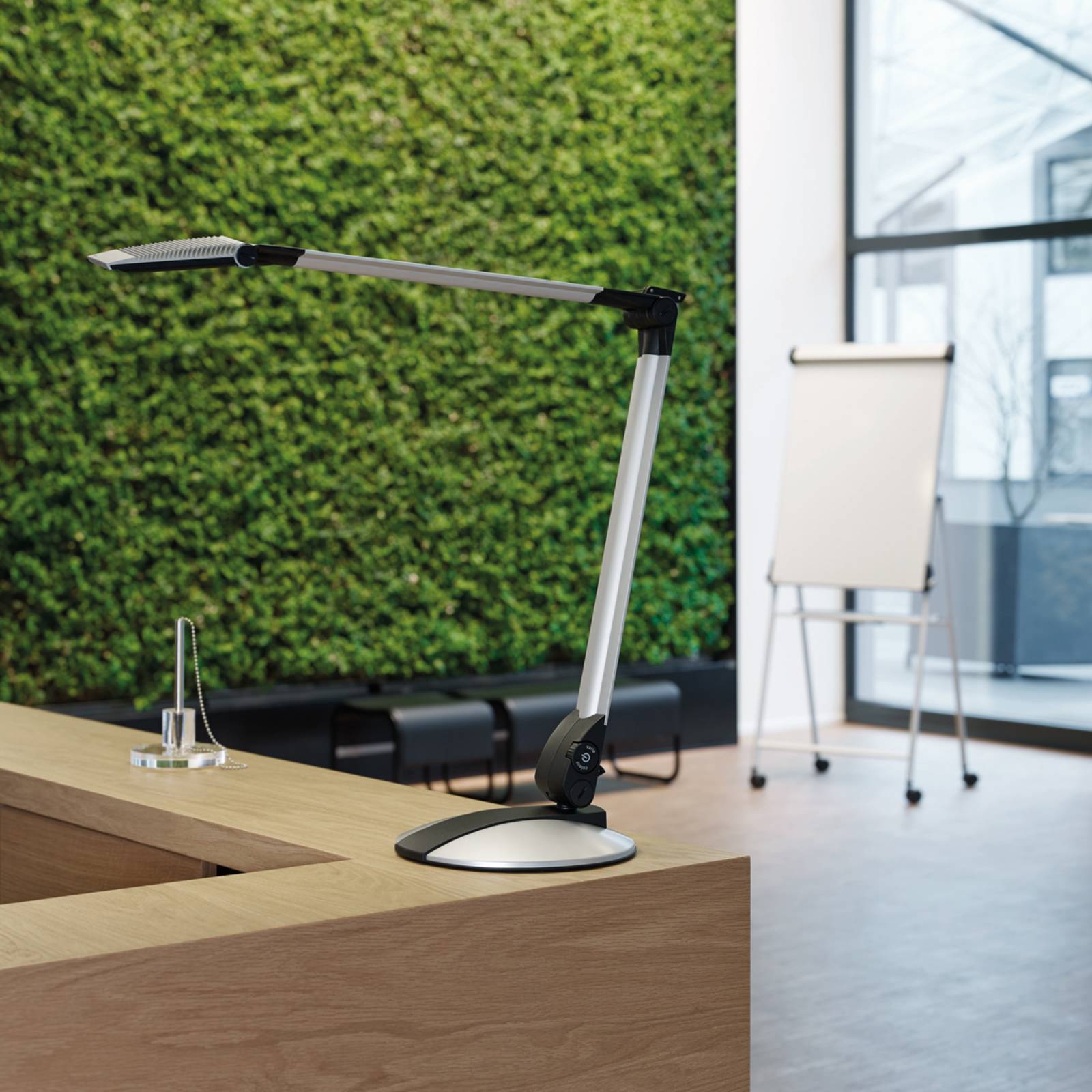 Maul MAULoptimus LED stolní lampa, stříbrná, stojan, Pracovna / kancelář, Hliník, plast, 8W, Energetická třída: E, P: 60.5 cm, L: 22 cm, K: 53cm