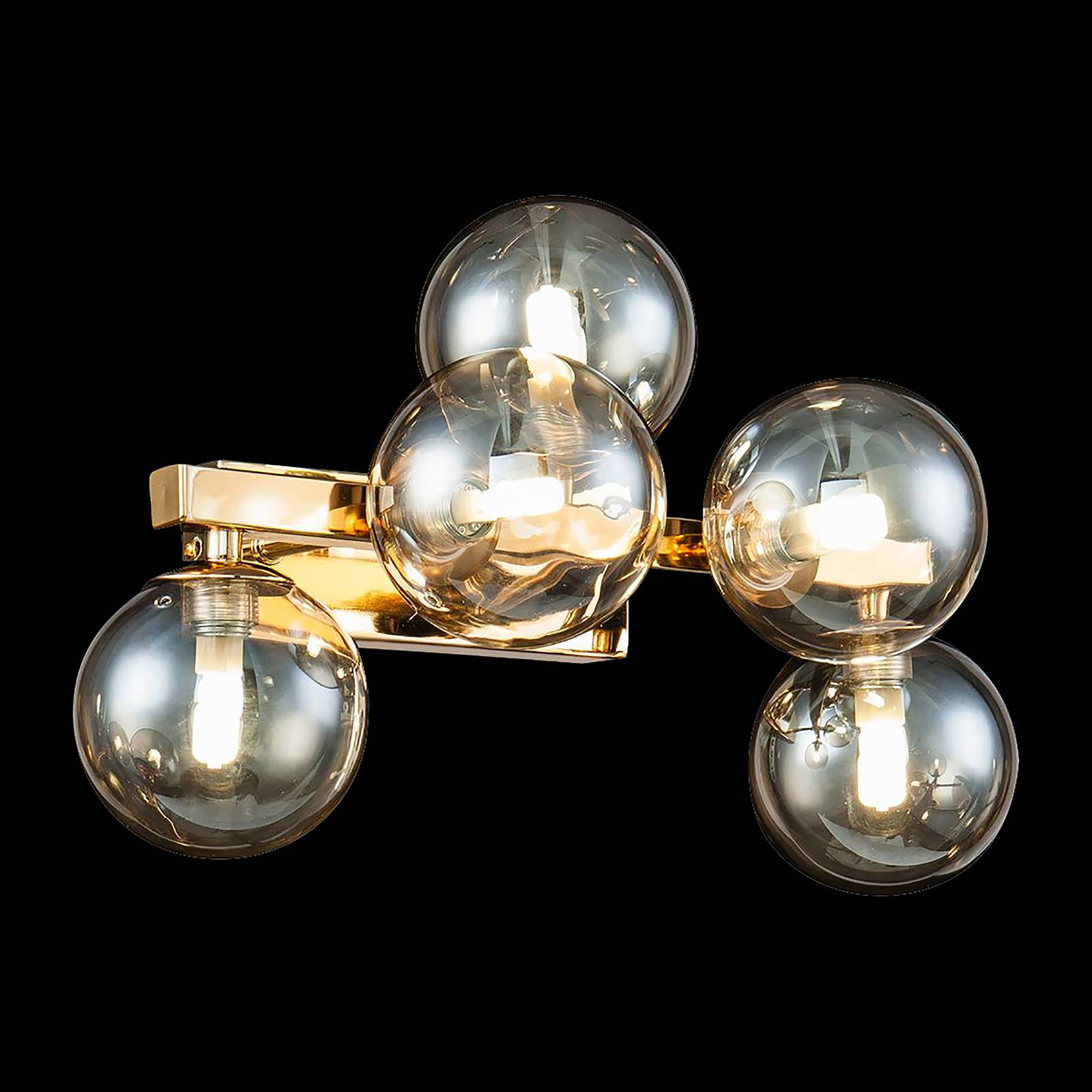 Maytoni Dallas nástěnné světlo s 5 koulemi, zlatá, Obývací pokoj / jídelna, kov, sklo, G9, 28W, L: 38 cm, K: 24cm