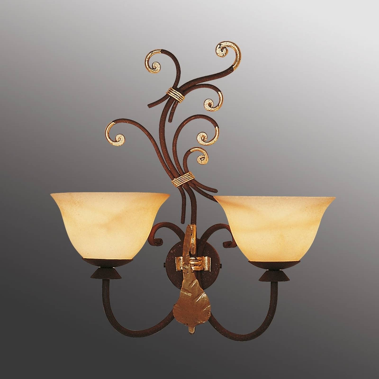 Menzel Florence – nástěnné světlo, dvě žárovky, Obývací pokoj / jídelna, železo, kouřové sklo Scavo, lístkové zlato, E14, 42W, L: 26 cm, K: 43cm
