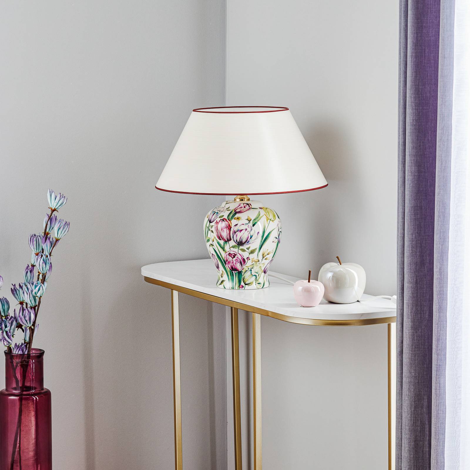 Menzel Living – stolní lampa s květinovou nohou, Obývací pokoj / jídelna, keramika, fólie, kov, E27, 42W, K: 49cm