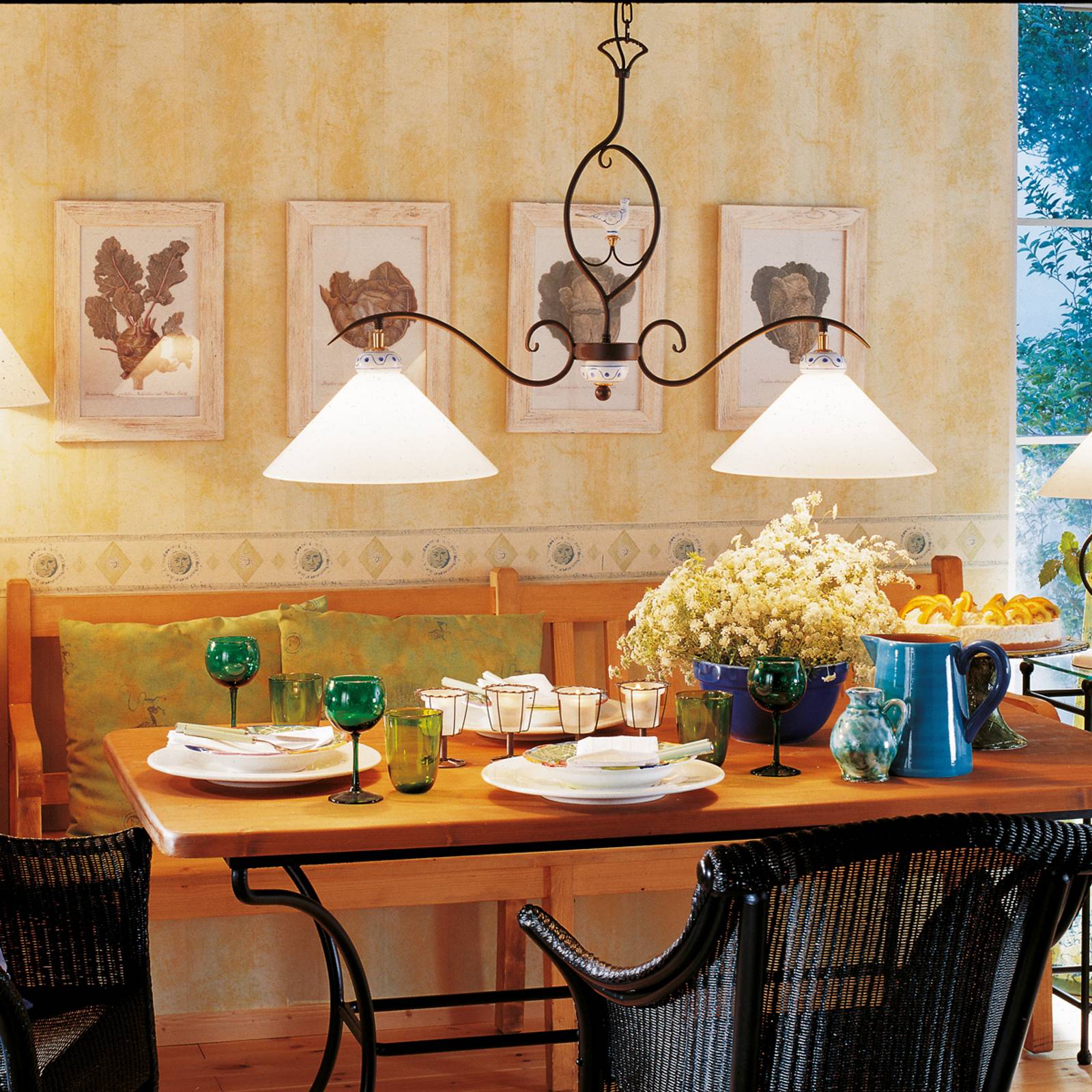 Menzel Provence Chalet – závěsné světlo 2 zdroje, Obývací pokoj / jídelna, kov, opálové sklo, keramika, E27, 100W, P: 102 cm, K: 66cm