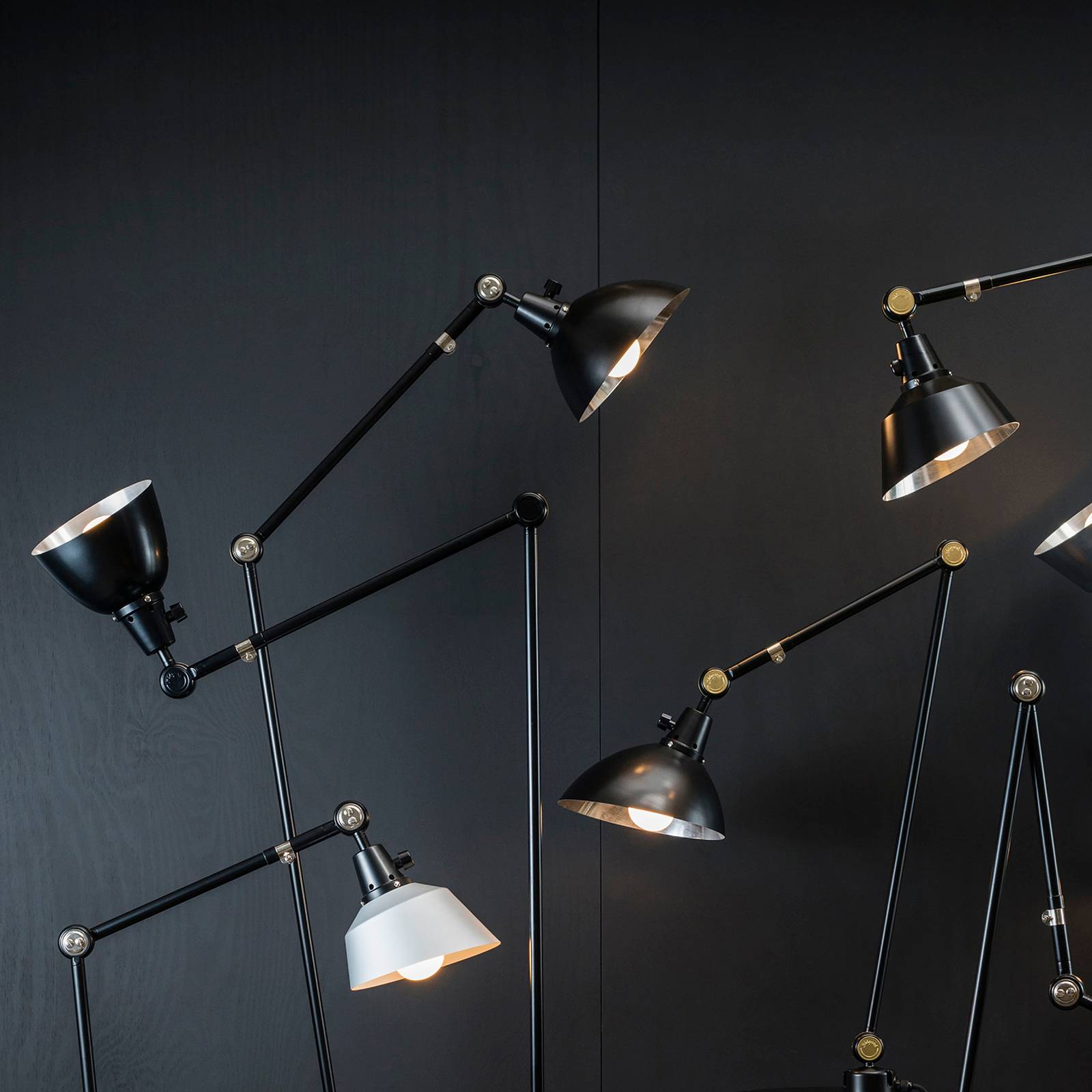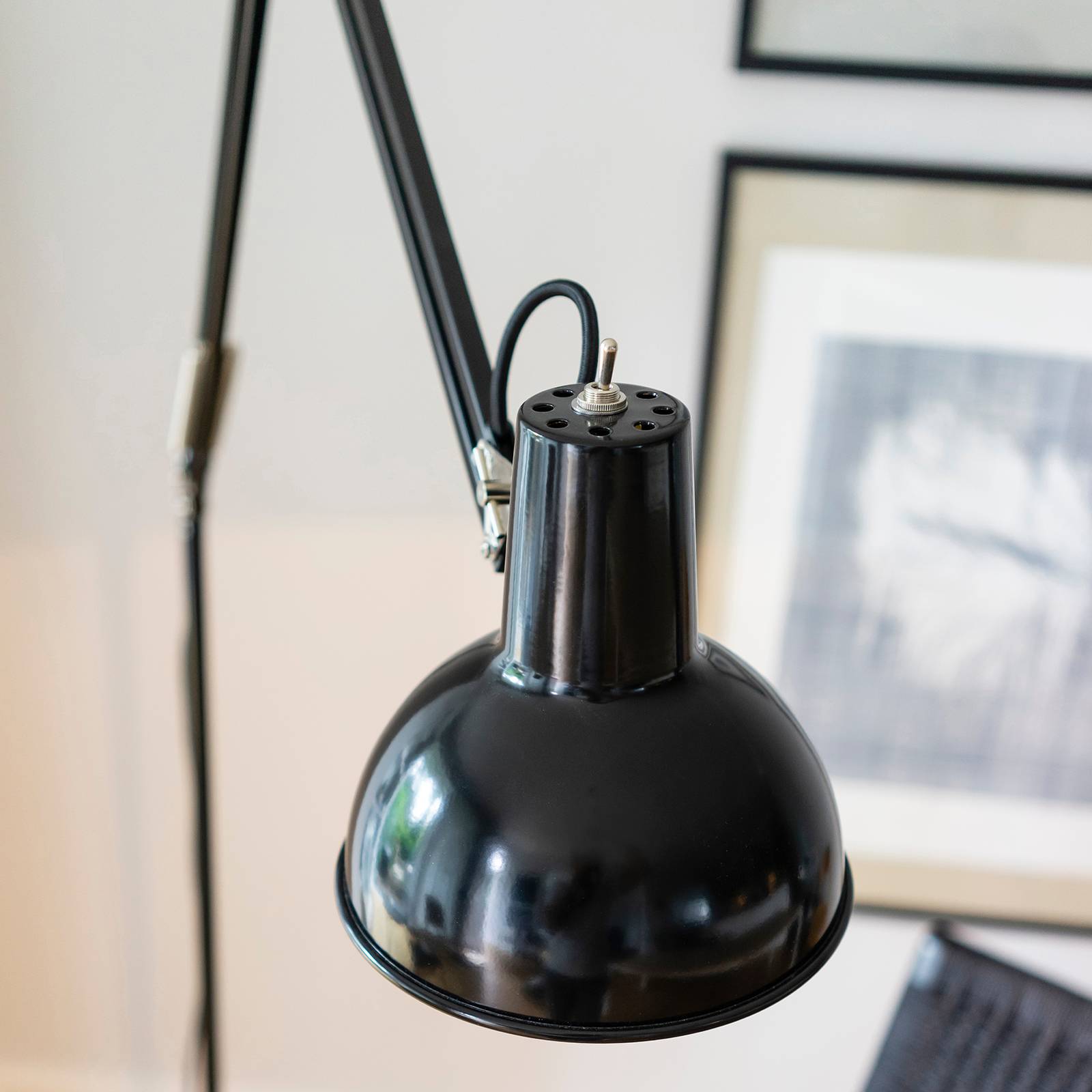 midgard Federzug stojací lampa, nastavitelná černá, Obývací pokoj / jídelna, hliník, ocel, textil, E27, 60W, L: 30 cm, K: 160cm