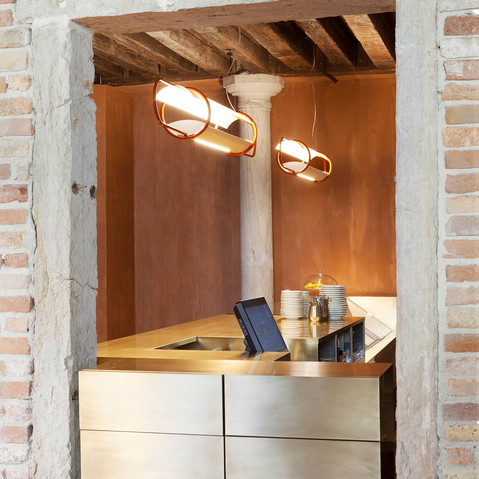 Modo Luce Clip 130 LED závěsné světlo karamelová, Obývací pokoj / jídelna, kov, polykarbonát, 48W, P: 130 cm, K: 23cm