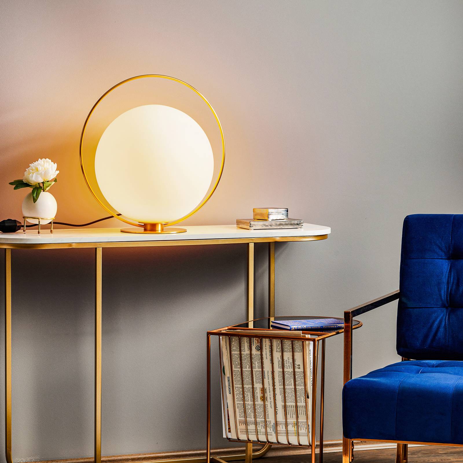 Molto Luce Tycho stolní lampa s mosazně zbarveným kruhem, Obývací pokoj / jídelna, sklo, kov, E27, 9W, K: 46cm