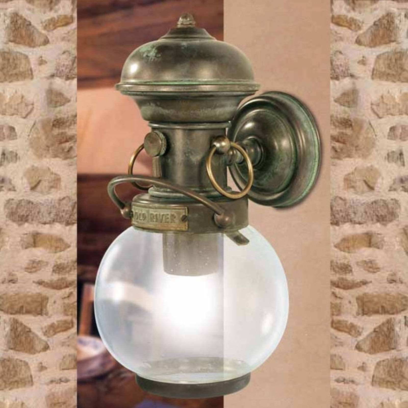 Moretti Luce Venkovní nástěnné svítidlo Ocean lucerna, mosaz, Chodba, mosaz, sklo, E27, 60W, K: 27cm