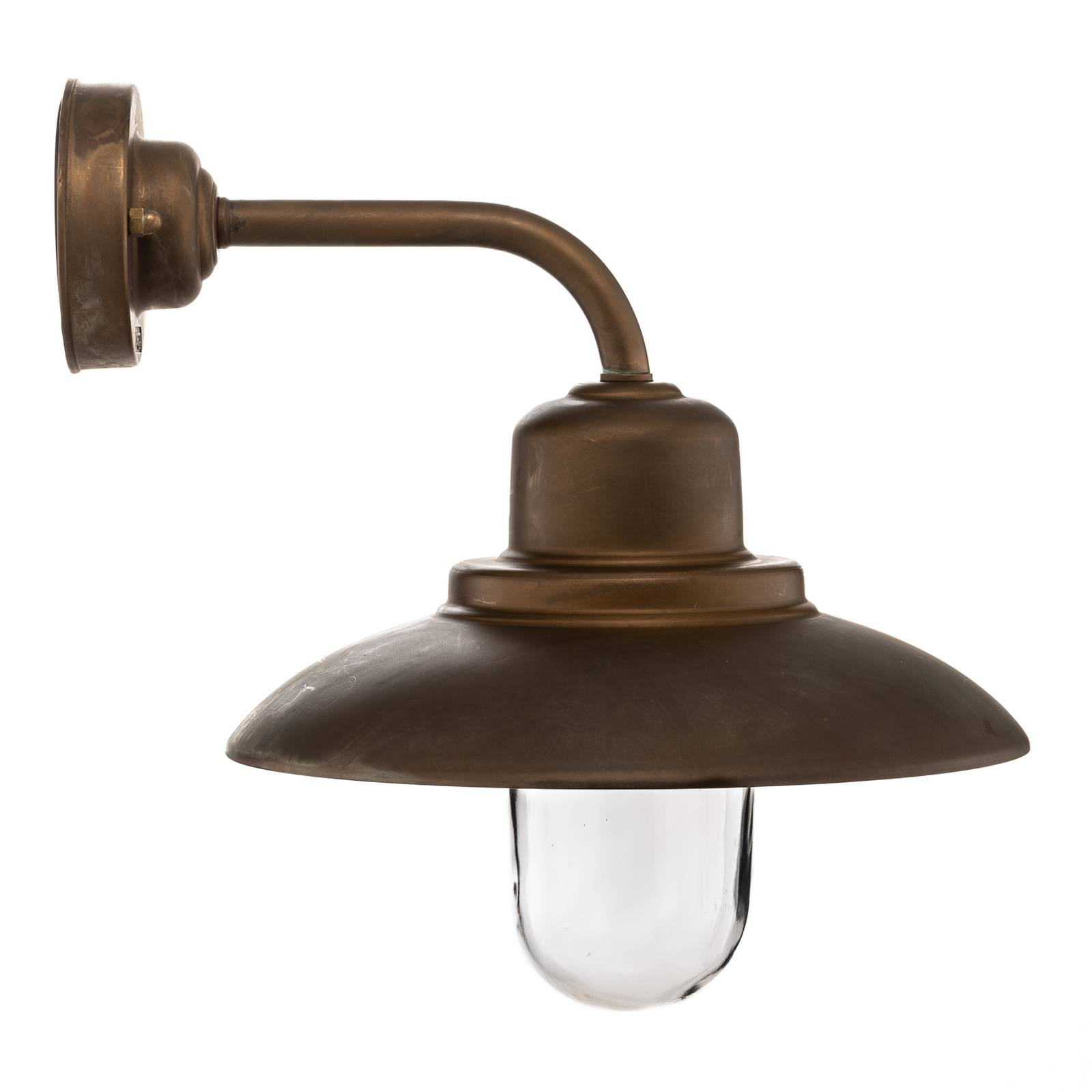 Moretti Luce Venkovní nástěnné svítidlo Susa – odolné proti mořské vodě, Patinovaný odlitek ze starožitné mosazi, sklo, E27, 75W, L: 36.5 cm, K: 35cm