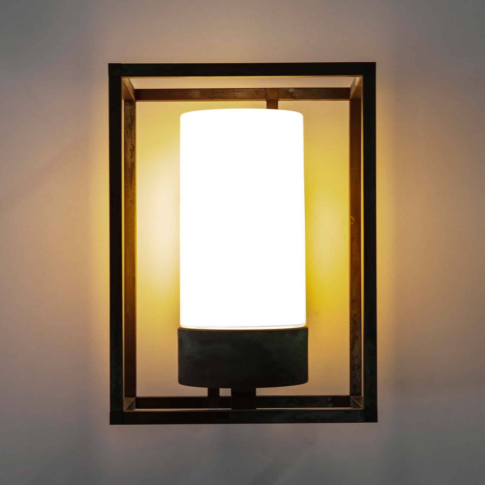 Moretti Luce Venkovní nástěnné světlo Cubic³ 3363 mosaz/opálová, mosaz, sklo, E27, 52W, L: 20 cm, K: 27cm