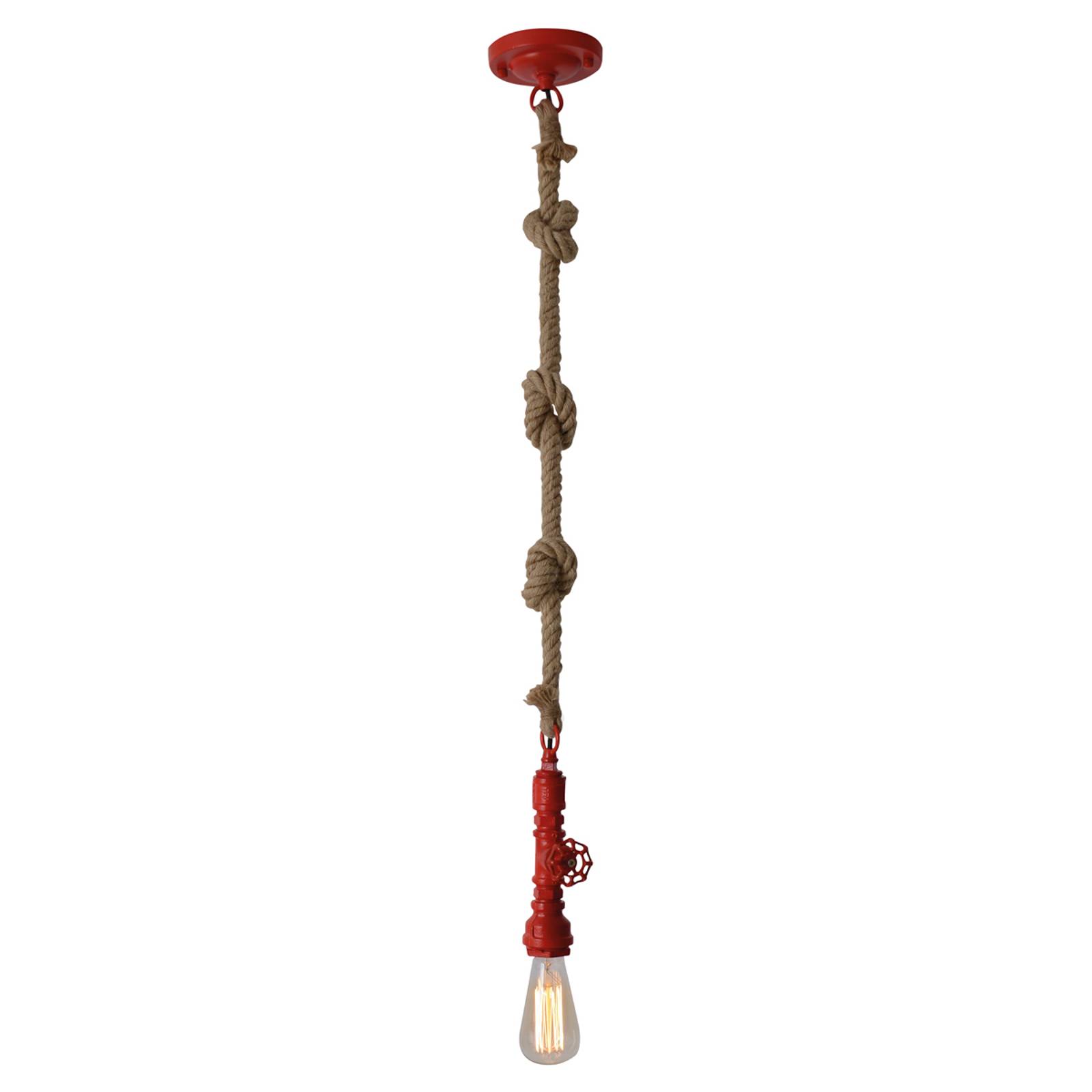 Näve Závěsné světlo Vintage s konopným lanem – červené, Obývací pokoj / jídelna, konopné lano, kov, E27, 40W