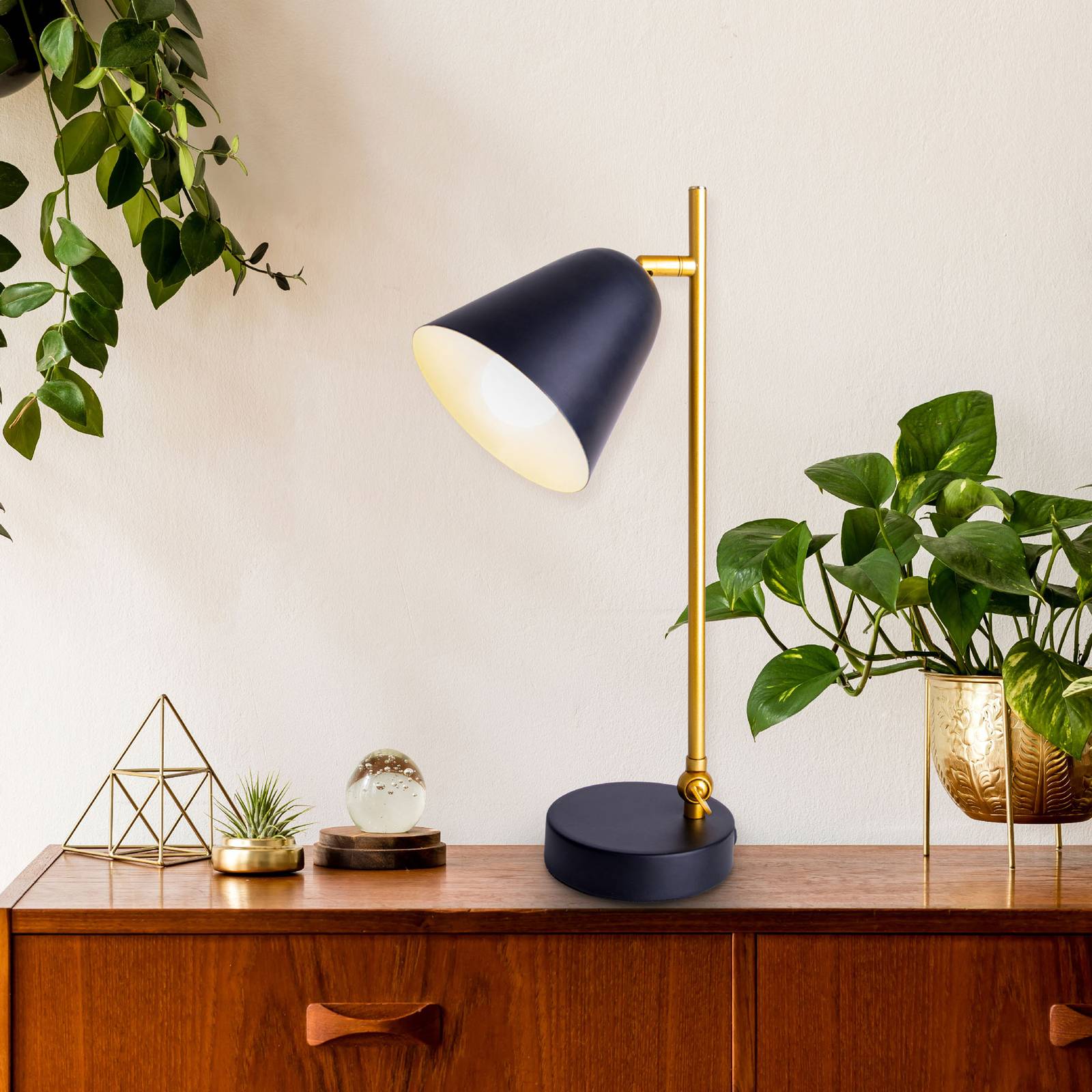 Näve Stolní lampa Triton v černé a zlaté barvě, Pracovna / kancelář, železo, plast, E14, 5W, K: 42.5cm