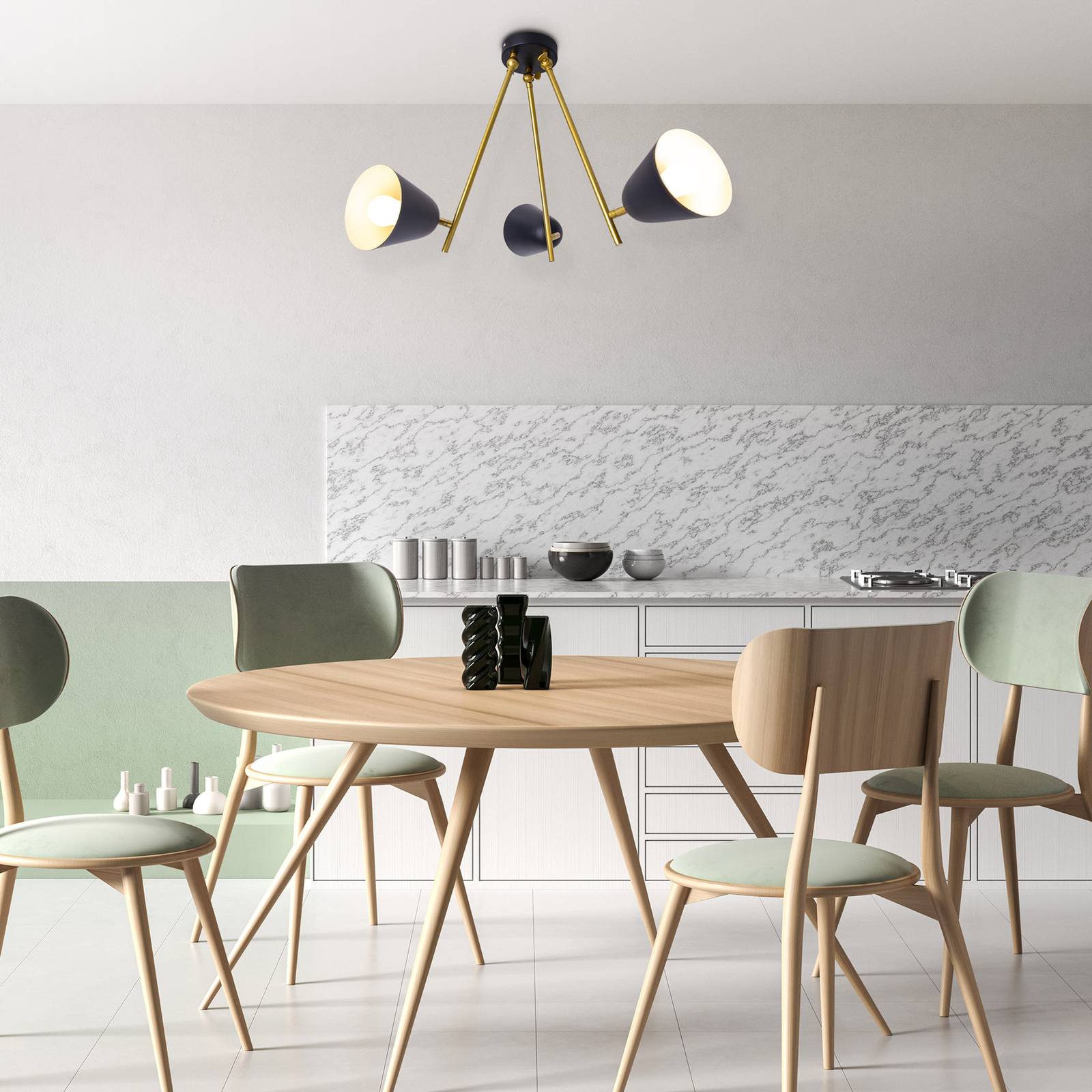 Näve Stropní světlo Triton, černá a zlatá, tři zdroje, Obývací pokoj / jídelna, železo, E14, 40W, K: 50cm