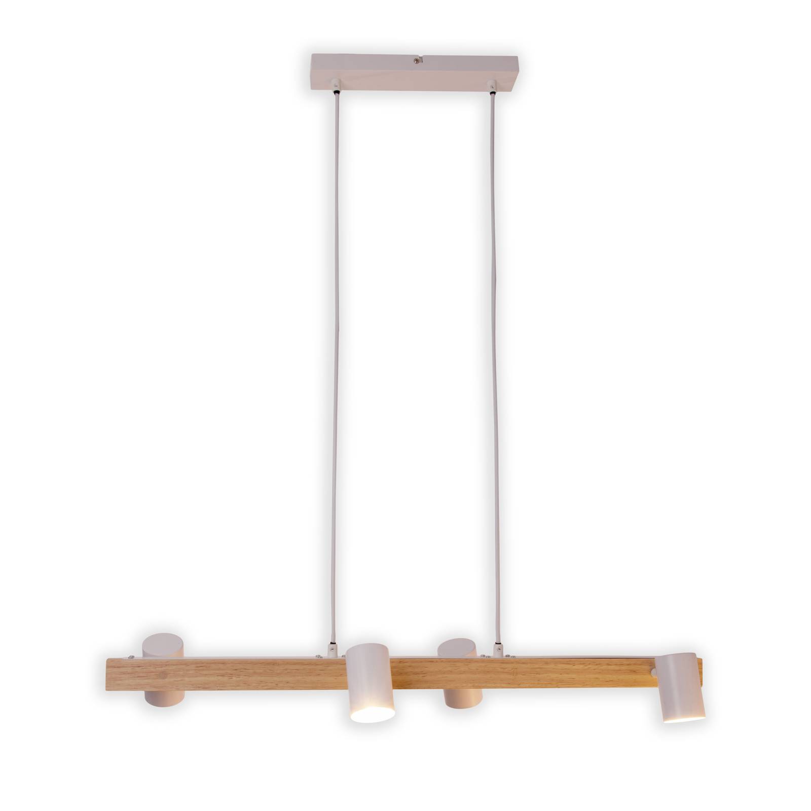 Näve Závěsné světlo Frida 4 bodovky, bílá/světlé dřevo, Obývací pokoj / jídelna, kov, dřevo, GU10, 40W, P: 80 cm, L: 24 cm