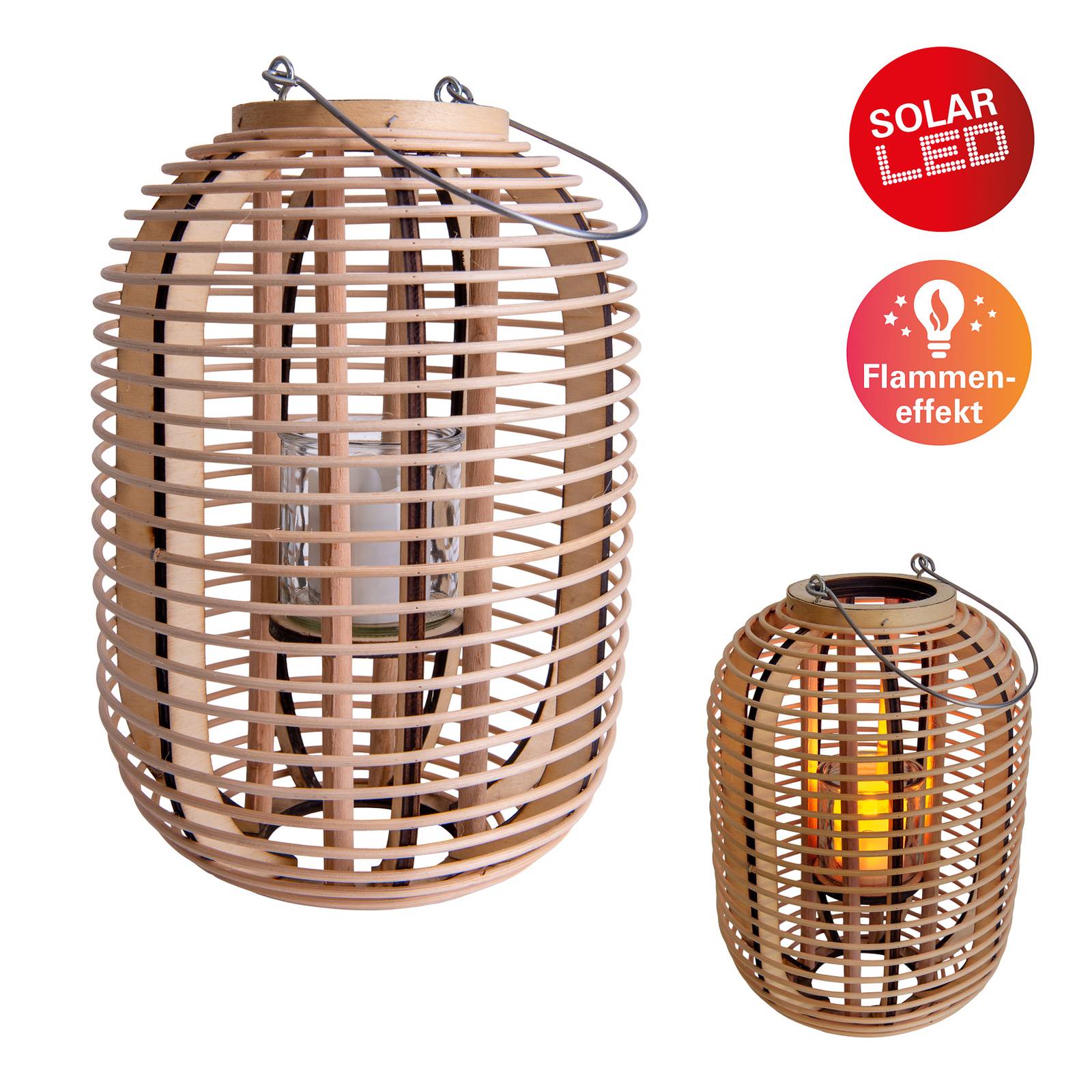 Näve LED solární dekorační světlo, koš, 32 cm, přírodní, bambus, sklo, plast, kov, 0.01W, K: 32cm