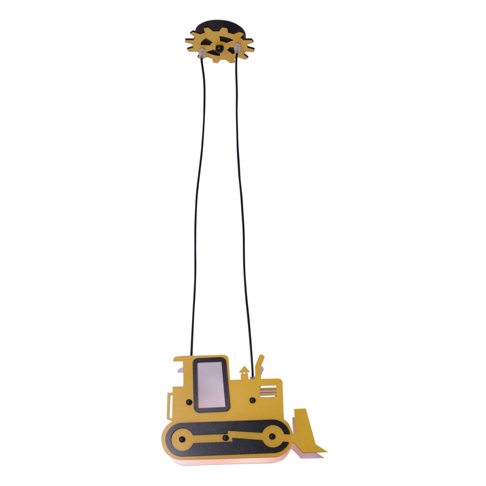 Näve Závěsné světlo Carter – svítící buldozer, Dětský pokoj, kov, dřevo, E27, 40W, P: 34 cm, L: 12 cm