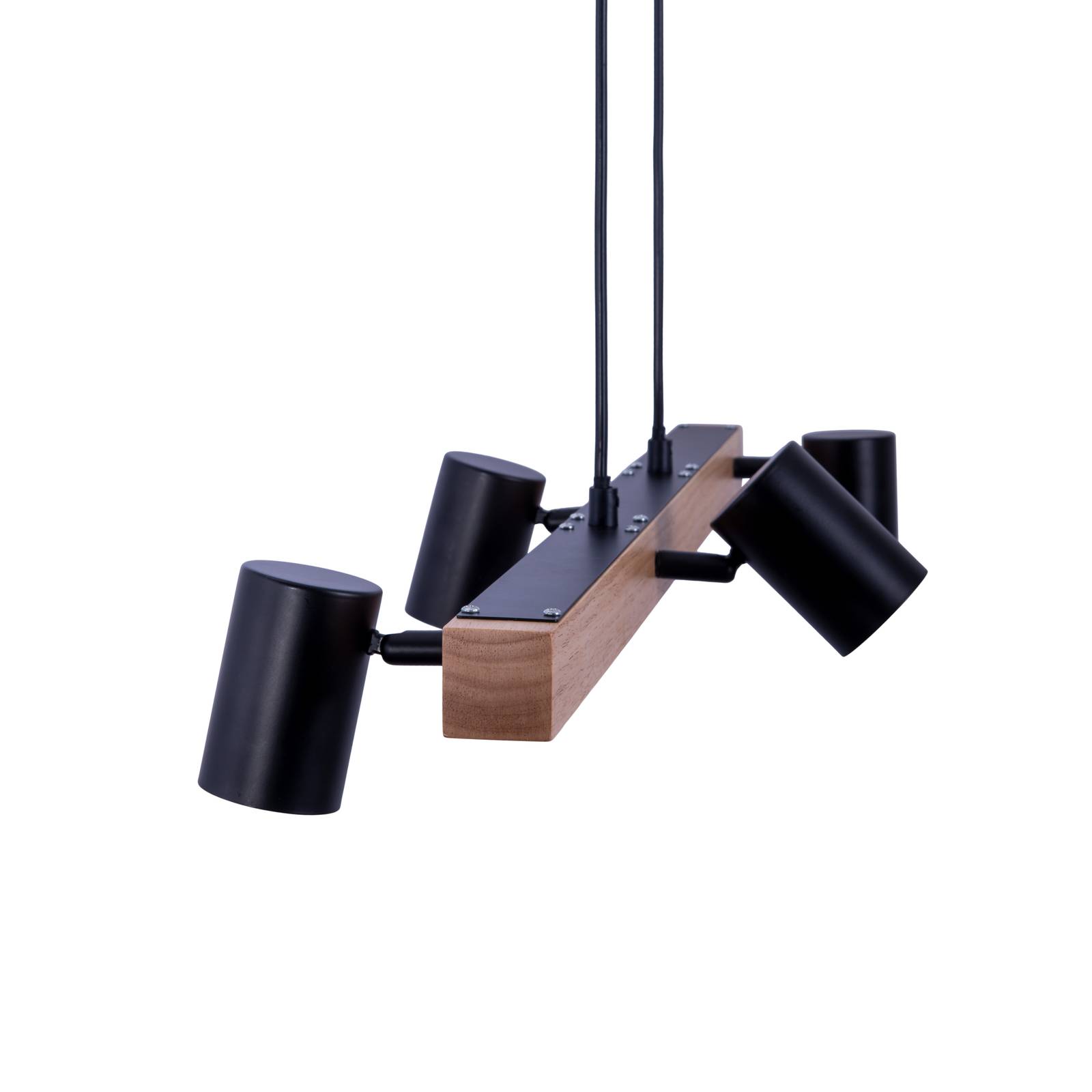 Näve Závěsné světlo Frida 4 bodovky, černá/světlé dřevo, Obývací pokoj / jídelna, kov, dřevo, GU10, 40W, P: 80 cm, L: 24 cm