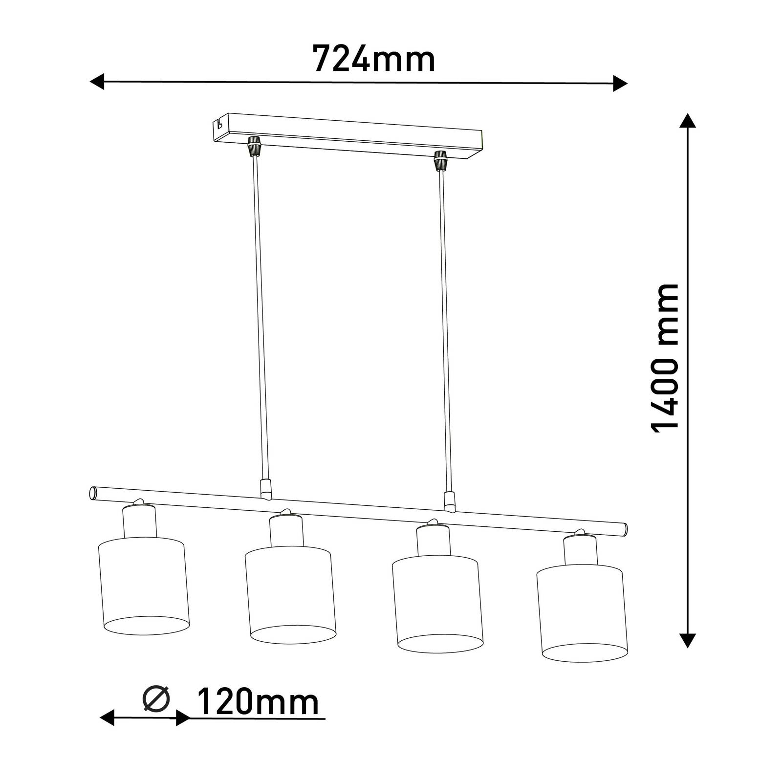 Näve Závěsné světlo Maron, čtyři zdroje textil přírodní, Obývací pokoj / jídelna, ocel, textil, E14, 40W, P: 72.4 cm, L: 12 cm, K: 14cm