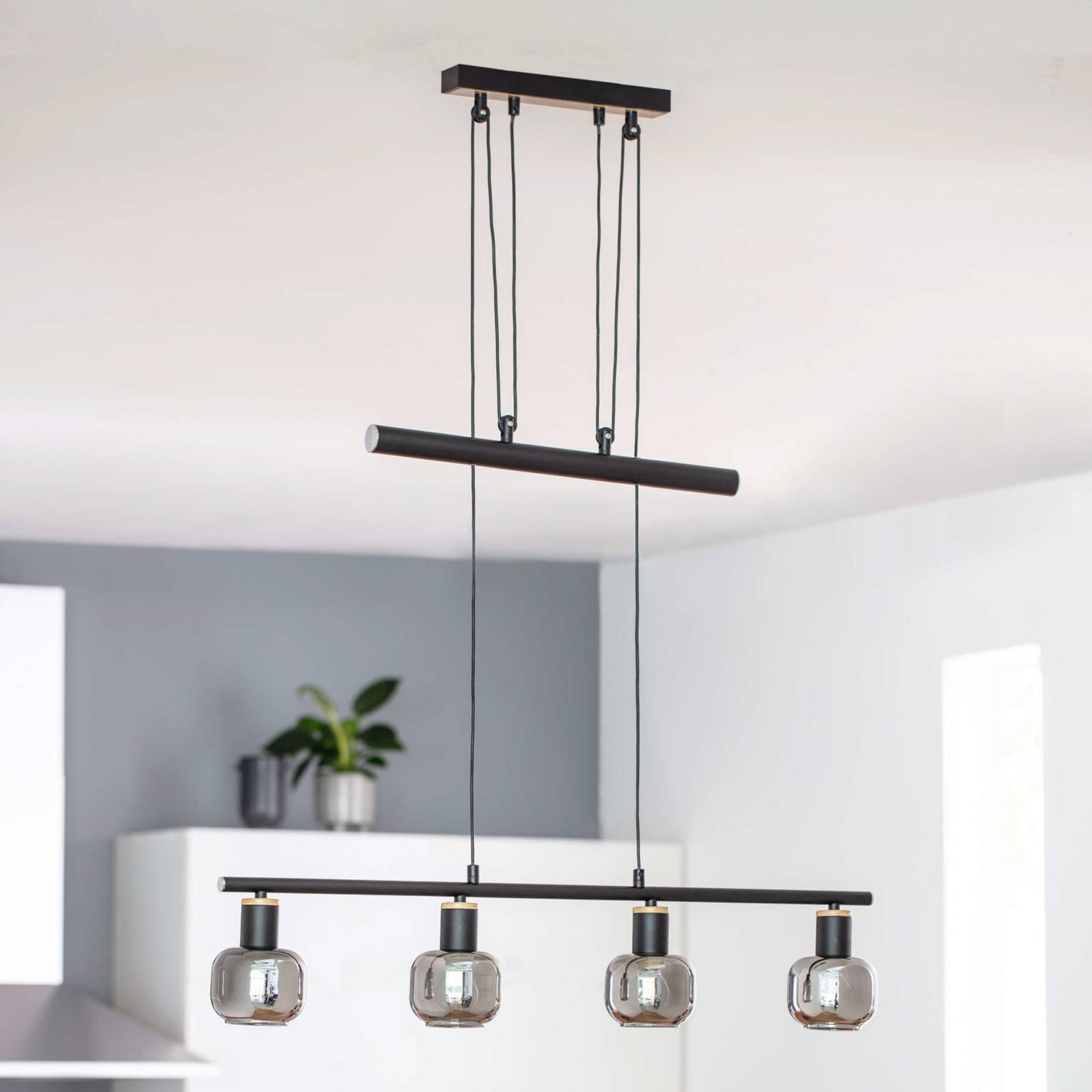 Näve Trámové závěsné světlo Fumoso 4 zdroje černá/šedá, Obývací pokoj / jídelna, železo, sklo, E14, 40W, P: 78 cm, L: 10 cm
